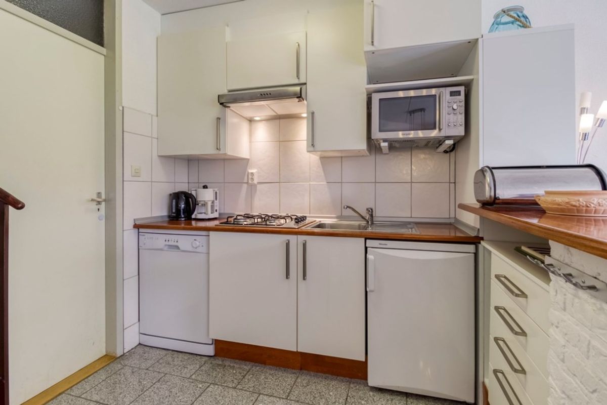 Via de entree komt u in de hal met meterkast en ruimte voor de garderobe. Vanuit de hal is er toegang tot de badkamer, een apart toilet met fonteintje en de woonkamer. De badkamer is voorzien van douche en wastafel. De woonkamer met zit- en eethoek heeft een schuifdeur naar het terras en staat in open verbinding met de keuken. De keuken is voorzien van; 4-pits gaskookplaat, afzuigkap, spoelbak, losse koelkast met vriesvak, vaatwasmachine en combi-magnetron.