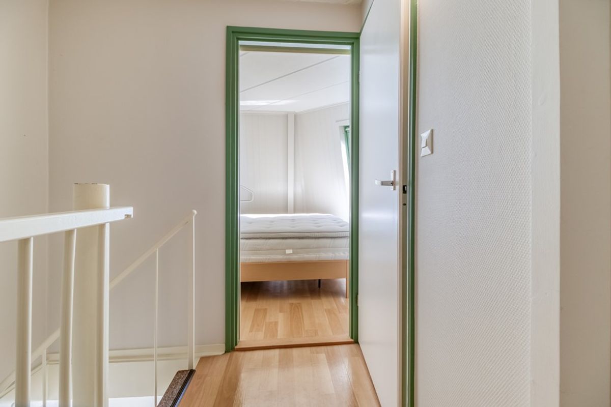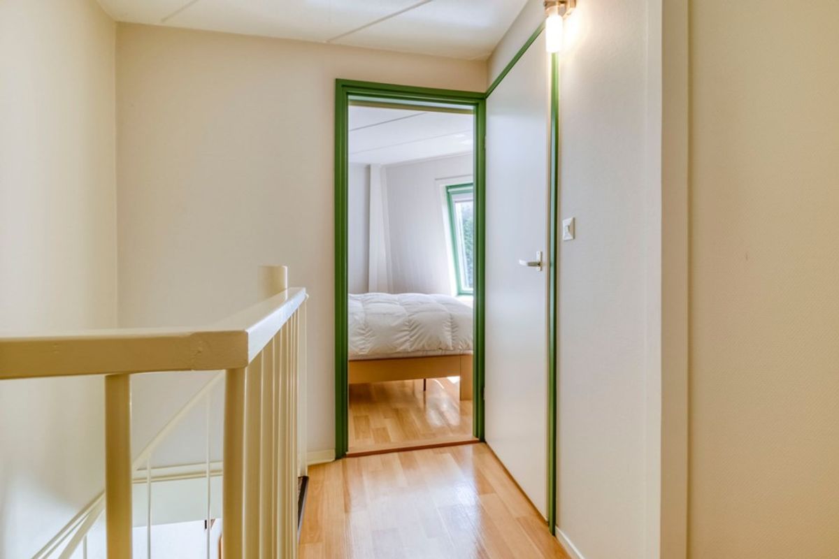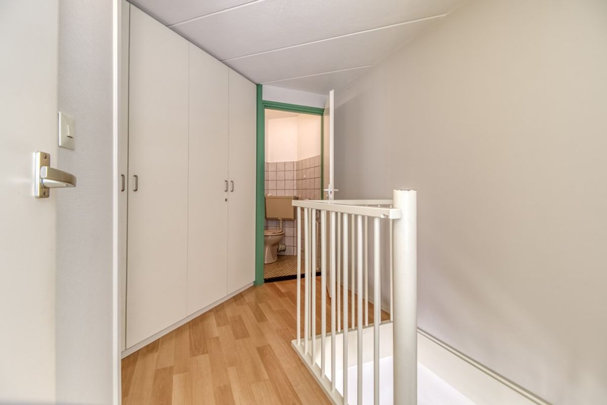 Via de wenteltrap in de woonkamer is de eerste verdieping te bereiken. Hier bevindt zich een ruime overloop met grote kastenwand en tevens een 2e toilet met fonteintje. Er zijn 2 aparte slaapkamers. Er bestaat een mogelijkheid om een 3e slaapgelegenheid te creëren op de overloop.
