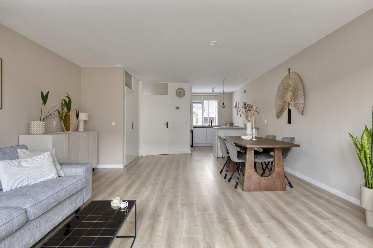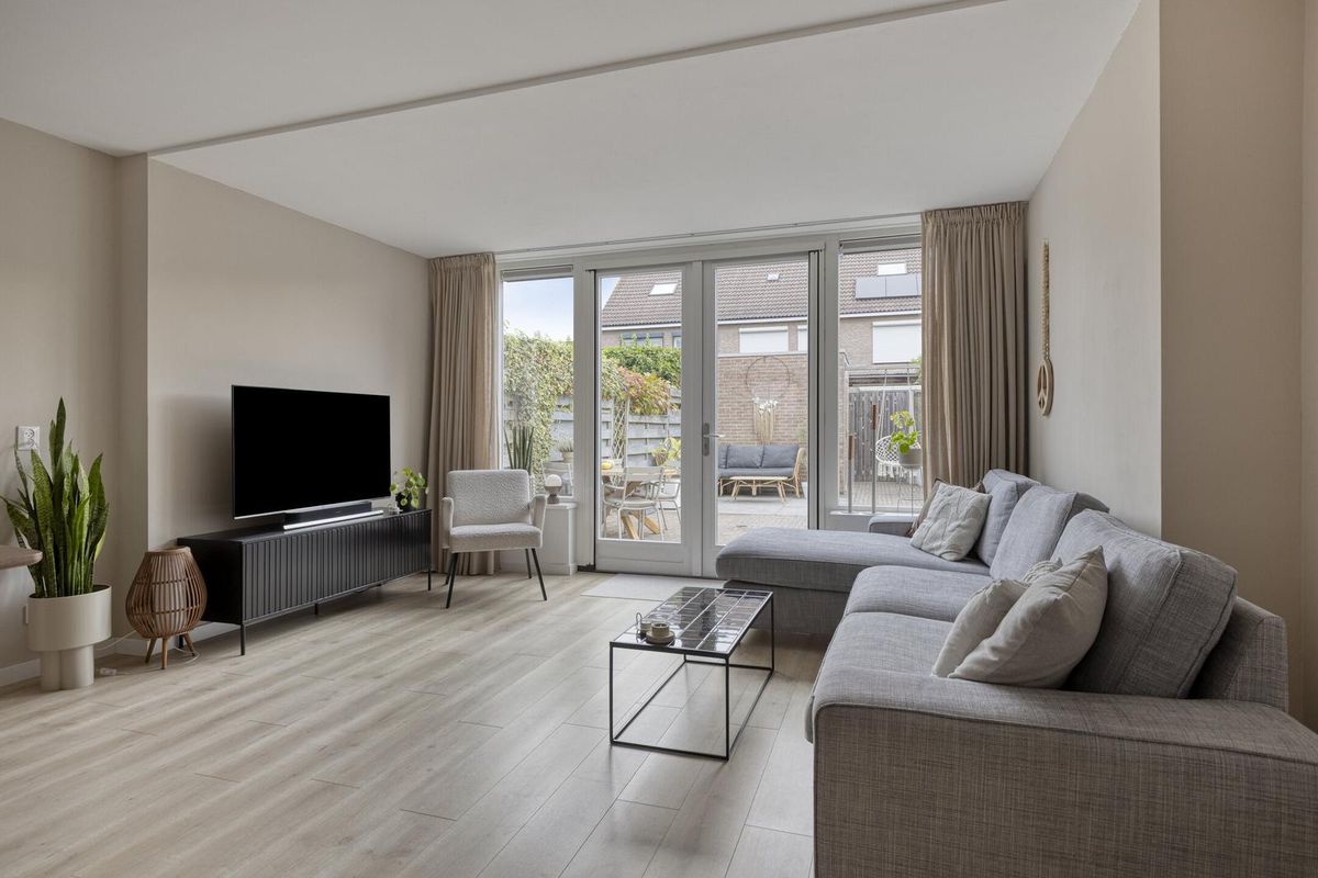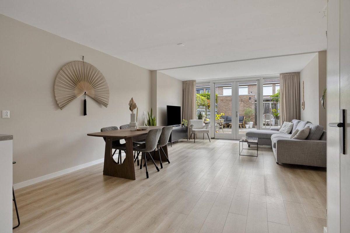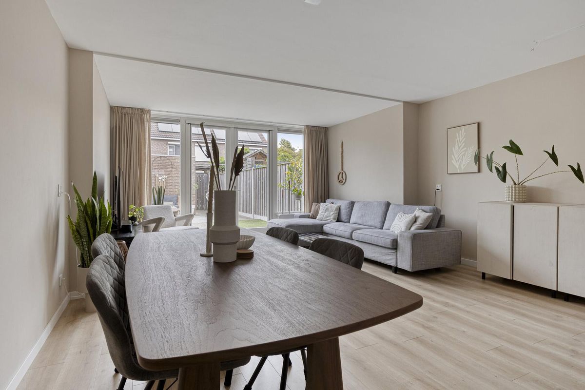 Via de entree aan de voorzijde van de woning wordt de hal bereikt. De hal biedt plaats aan het toilet, de meterkast en trapopgang en biedt toegang tot de woonkamer. Recent is de woning aan de achterzijde uitgebouwd waardoor de woonkamer aanzienlijk is vergroot. Dit maakt dat de woonkamer zeer royaal is en daarmee meer dan voldoende ruimte biedt voor een ruime opstelling van de zithoek en de eettafel. Door de grote raampartijen in de woning komt veel natuurlijke lichtinval binnen waarmee de woonkamer een zeer prettige plaats is om te verblijven. De woonkamer is tuingericht en de openslaande tuindeuren aan de achterzijde van de woning maken dat de heerlijke achtertuin binnen een handomdraai te bereiken is.