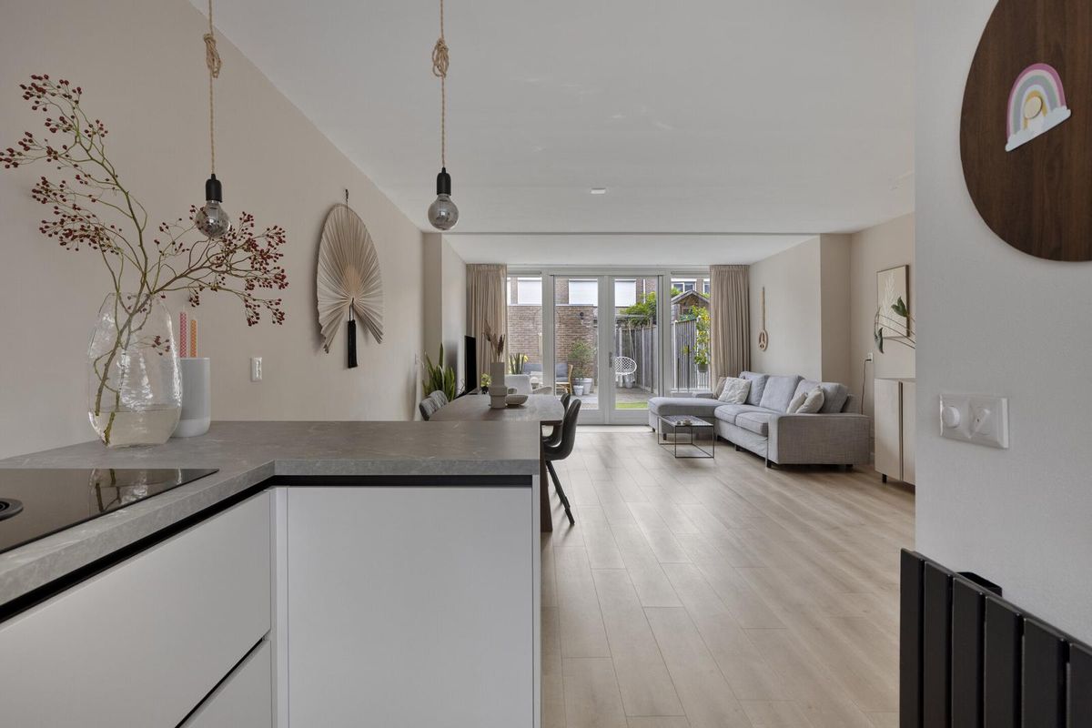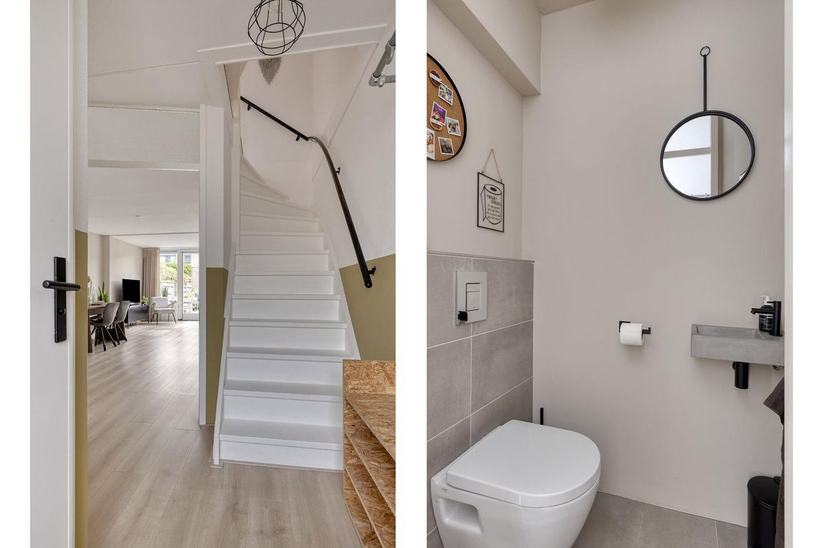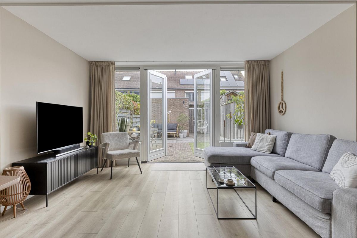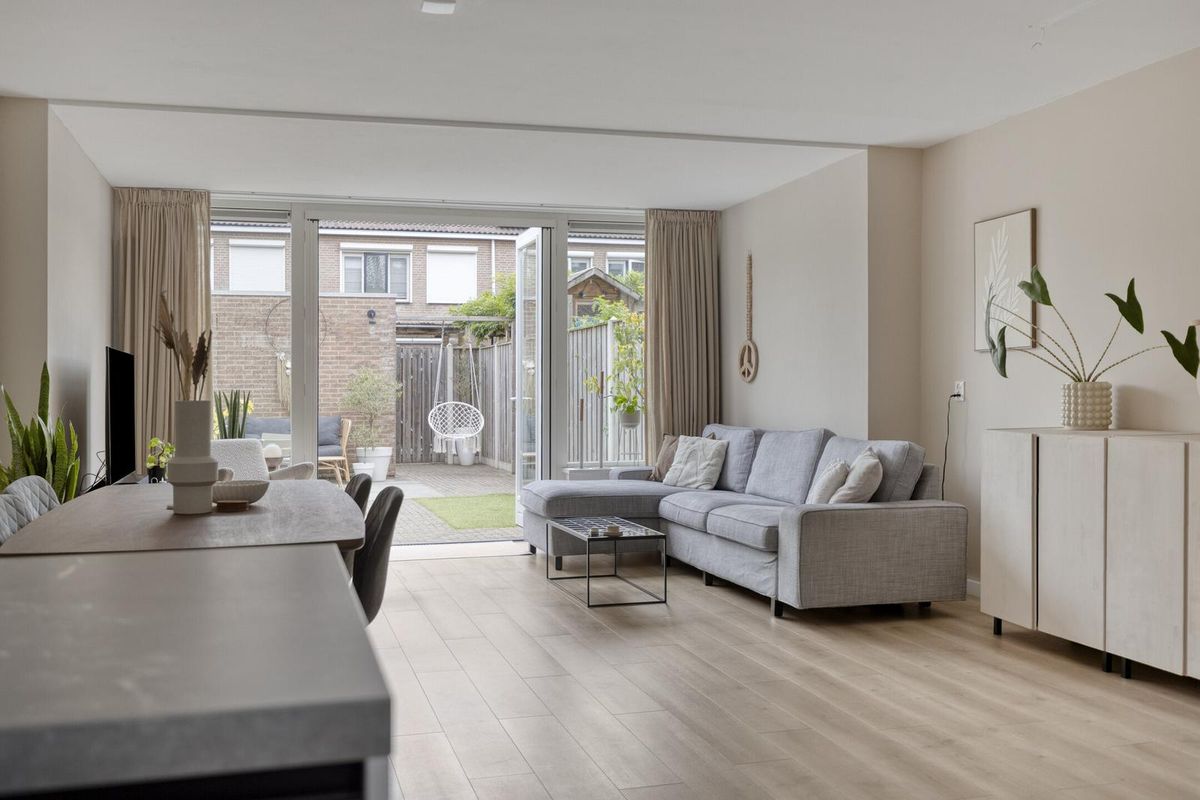 Via de entree aan de voorzijde van de woning wordt de hal bereikt. De hal biedt plaats aan het toilet, de meterkast en trapopgang en biedt toegang tot de woonkamer. Recent is de woning aan de achterzijde uitgebouwd waardoor de woonkamer aanzienlijk is vergroot. Dit maakt dat de woonkamer zeer royaal is en daarmee meer dan voldoende ruimte biedt voor een ruime opstelling van de zithoek en de eettafel. Door de grote raampartijen in de woning komt veel natuurlijke lichtinval binnen waarmee de woonkamer een zeer prettige plaats is om te verblijven. De woonkamer is tuingericht en de openslaande tuindeuren aan de achterzijde van de woning maken dat de heerlijke achtertuin binnen een handomdraai te bereiken is.