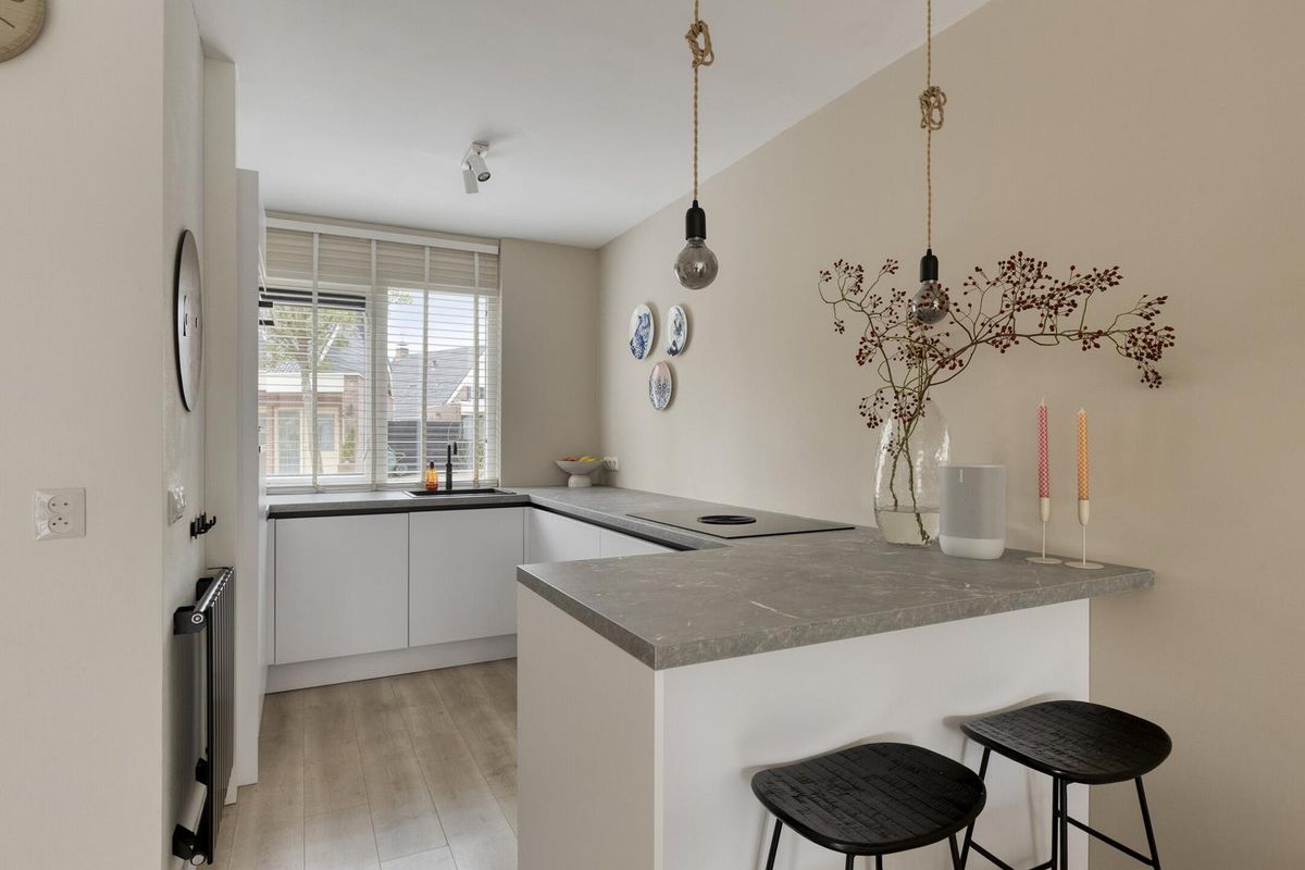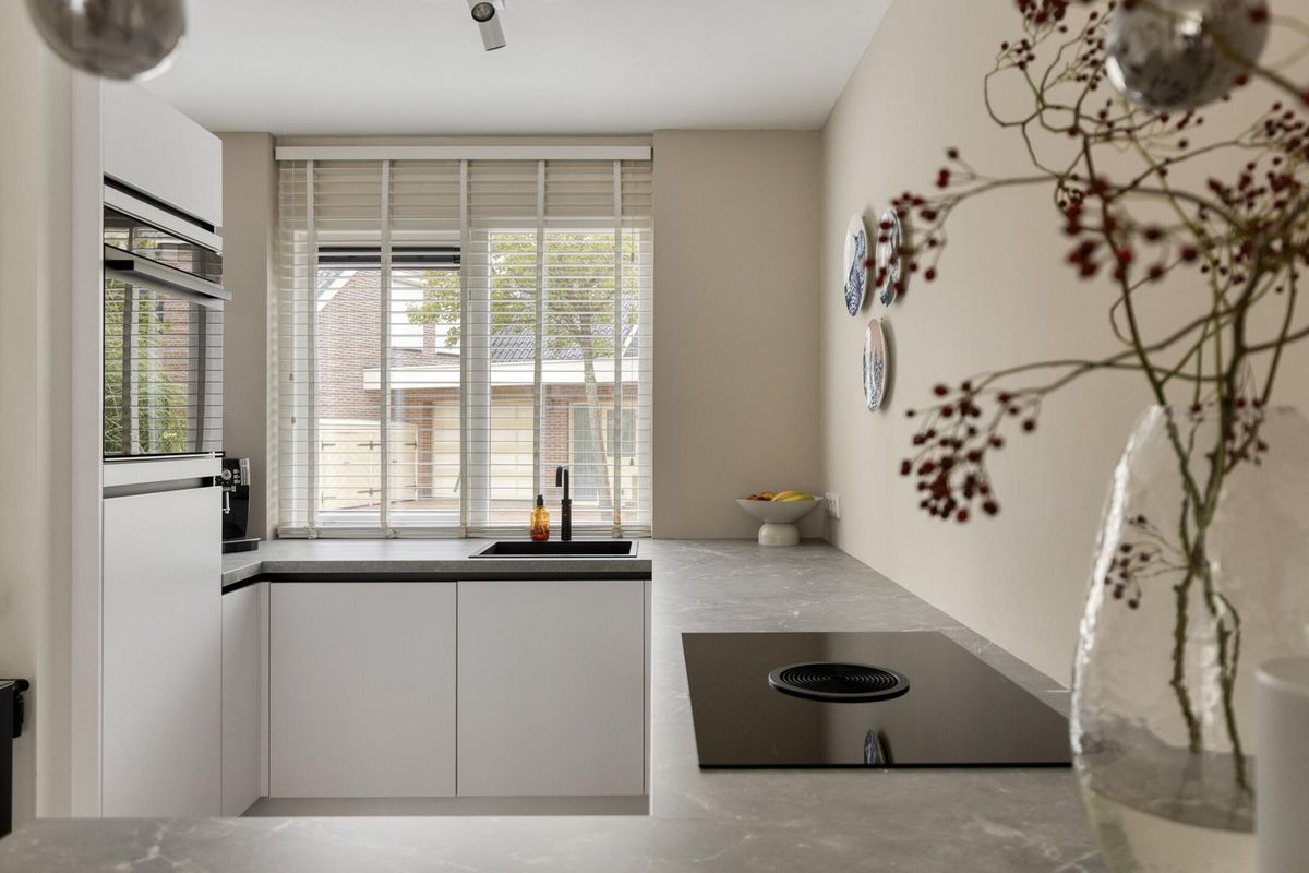 De keuken is aan de voorzijde van de woonkamer te vinden en is eveneens in het recente verleden nieuw geplaatst. De keuken is uiterst smaakvol vormgegeven en biedt u veel werk- en kastruimte. De keuken is uitgerust met o.a. een inductieplaat met afzuiging, vaatwasser, koel/vries-combi, combi-oven en spoelbak met Quooker.