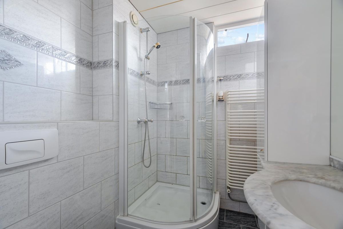 Via een vaste trap bereik je de zolderverdieping, waar een vierde slaapkamer is gecreëerd. Ook hier zorgen de dakramen voor veel licht, waardoor de ruimte perfect inzetbaar is als slaapkamer, werkplek of hobbykamer.