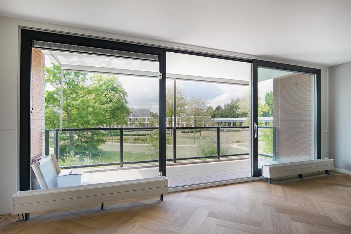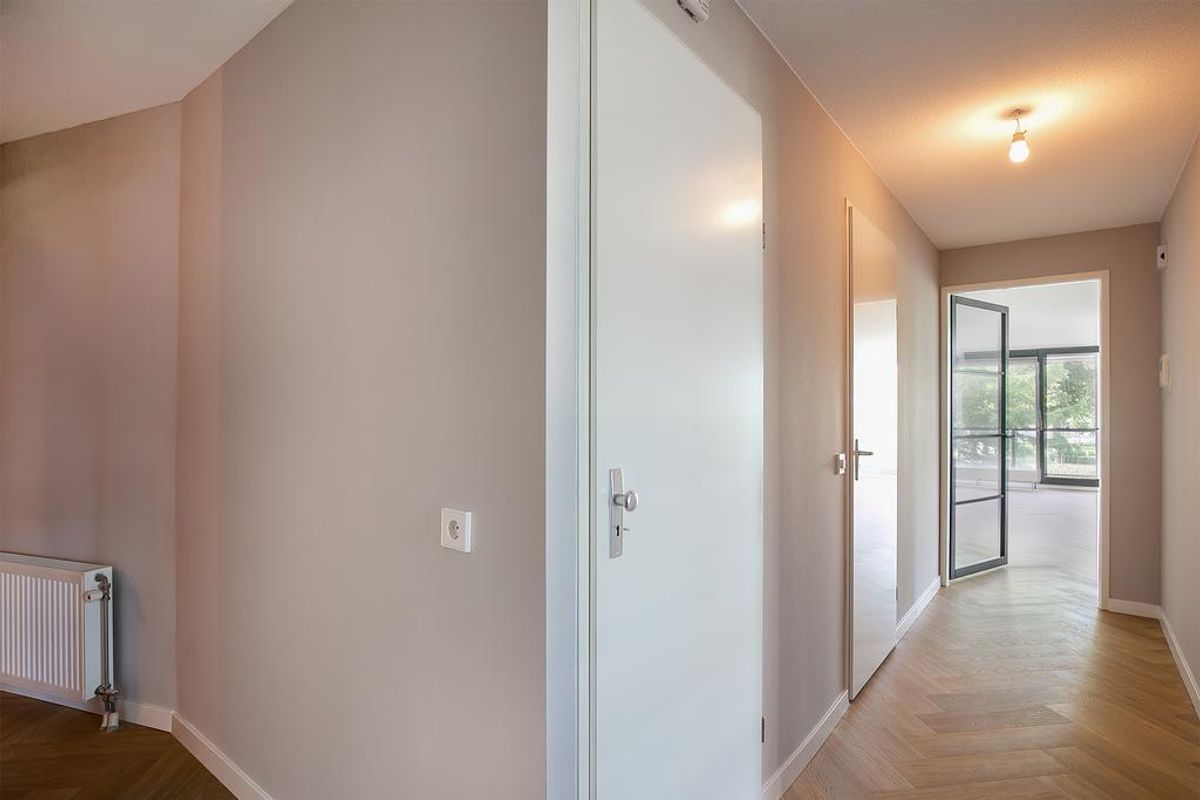 Entree en ruime hal met garderoberuimte, meterkast en toegang tot alle vertrekken. Toilet met hangend closet en fonteintje. Er is een aparte berg-/wasruimte met aansluiting voor wasmachine en droger en er is een aparte kast met opstelplaats voor zowel de cv-ketel als de mechanische ventilatie unit. De royale woonkamer is heerlijk licht en heeft uitzicht op het groen. De woonkamer is voorzien van een schuifpui naar het balkon, stucwerkwanden en pvc-vloer in visgraat motief. De open keuken is ook recent geplaatst en modern en luxe uitgevoerd. De keuken is voorzien van AEG inbouwapparatuur, zoals een inductie kookplaat, afzuigkap, combimagnetron, koel-/vriescombinatie en vaatwasser.