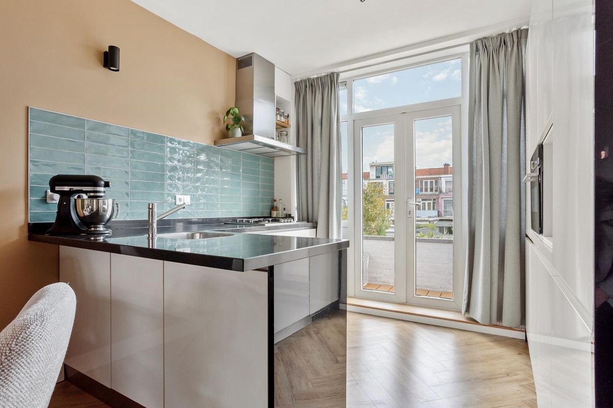 Aan de achterzijde vindt u tevens een praktische waskamer/stookruimte met de CV-ketel (2024) en eveneens toegang tot het balkon.
