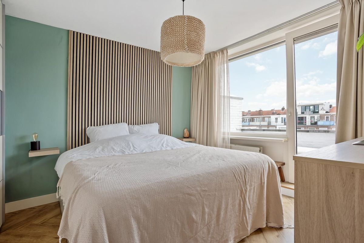 Openslaande deuren naar het prachtige dakterras van circa 19 m² waar u de hele dag in alle rust en privacy van de zon kan genieten. Een ideale plek voor een kop koffie in de ochtend of een ontspannen zomeravond met vrienden.