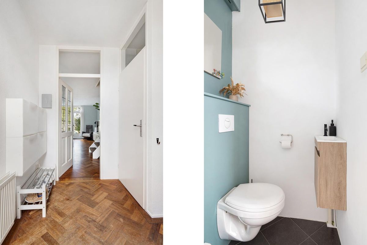 De voortuin beschikt over een ruime berging en een zijtuin/ doorgang direct aansluitend op de achtertuin. Via de voortuin kom je binnen in de hal met toegang tot het toilet. De trapopgang naar de eerste verdieping zit in de ruime woonkamer. De lichte ruime woonkamer met een hoogte van 2,58 meter biedt een prettige leefruimte met directe verbinding naar de achtertuin. Aan de voorzijde bevindt zich de open keuken, welke praktisch is ingedeeld en uitzicht geeft over de straatzijde. Vanuit de tuin is er toegang tot een handige berging, ideaal voor fietsen en tuinspullen.