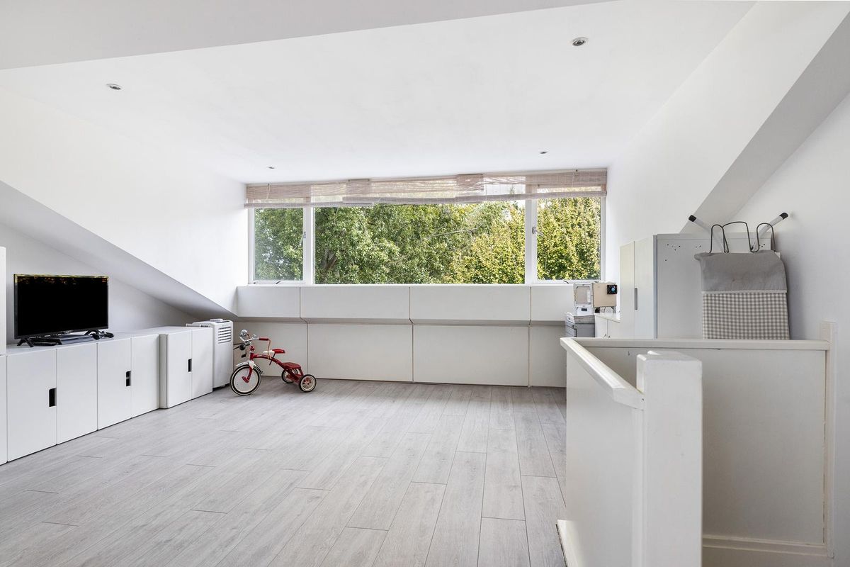 De tweede verdieping vormt een zeer ruime open ruimte, dankzij de dakkapel die zich uitstrekt over nagenoeg de volledige breedte van de woning. Deze ruimte beschikt over de wasmachineaansluiting en de CV-ketel, en is ideaal als werkkamer, hobbykamer of speelplek voor de kinderen. Tevens is op deze verdieping een ruime vierde slaapkamer met velux dakraam wat zorgt voor heerlijke natuurlijke lichtinval.