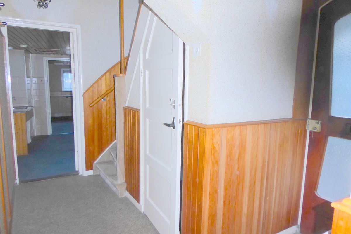 Voordeur en Entree zijn aanwezig aan de voorgevel en ook de zijgevel. Via de entree kom je in de hal / gang met toegang naar Toiletruimte, Douche, Kelder, Trapopgang en Bijkeuken (11 m2) met CV ketel en ook eigen buitendeur.