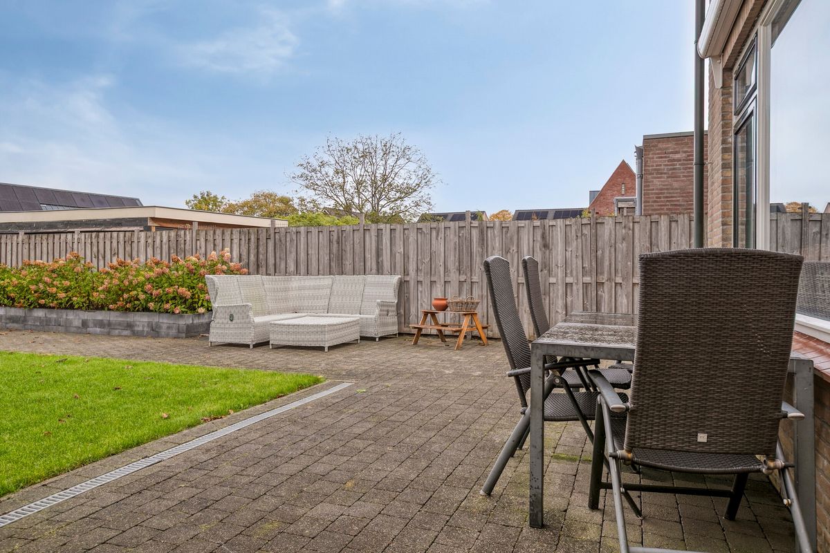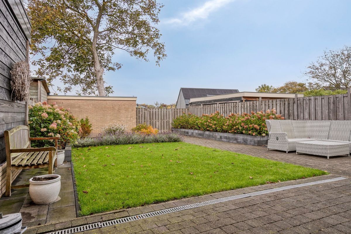 De achtertuin is heerlijk vrij gelegen, waardoor je hier volop privacy ervaart. Er is ruimte genoeg voor een terras, speelplek en beplanting.