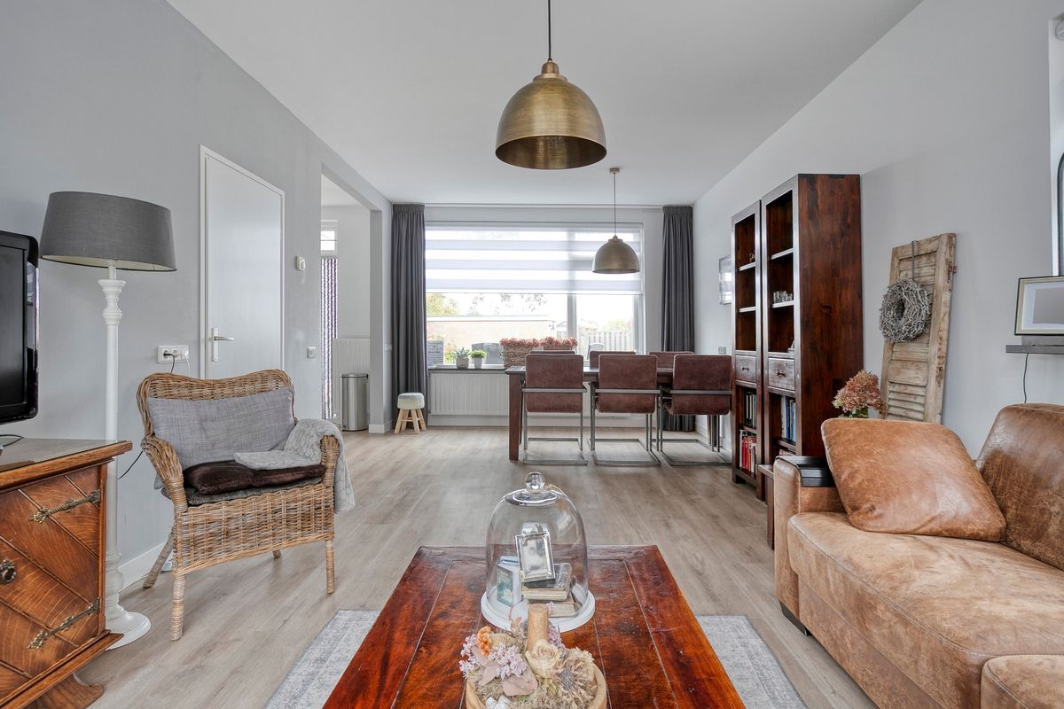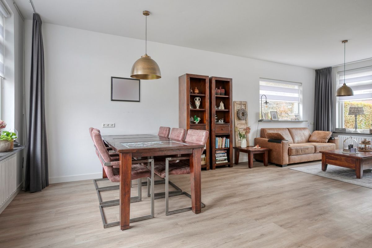De woonkamer is verrassend licht dankzij de grote ramen aan zowel de voor- als achterzijde. Er is voldoende plek voor een ruime zithoek én een gezellige eethoek, waar je met familie of vrienden geniet van lange avonden samen. De neutrale afwerking zorgt ervoor dat je hier moeiteloos je eigen stijl kunt aanbrengen.