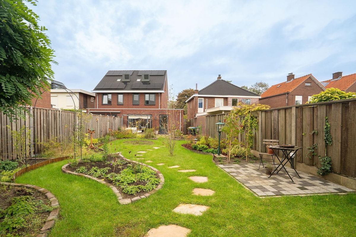 Tuin: De achtertuin is één van de grote pluspunten van deze woning: diep, fraai aangelegd en voorzien van meerdere terrassen. Hier geniet u de hele dag door van zon en privacy. Achter in de tuin staat een aparte berging, ideaal voor fietsen, tuinspullen of extra opslagruimte. Of u nu wilt tuinieren, loungen of een speelplek zoekt, deze tuin biedt het allemaal.