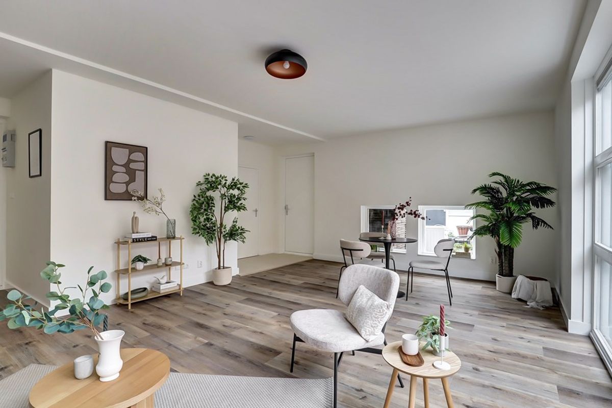 - Ruime woonkamer met veel lichtinval en schuifpui naar de patio-tuin