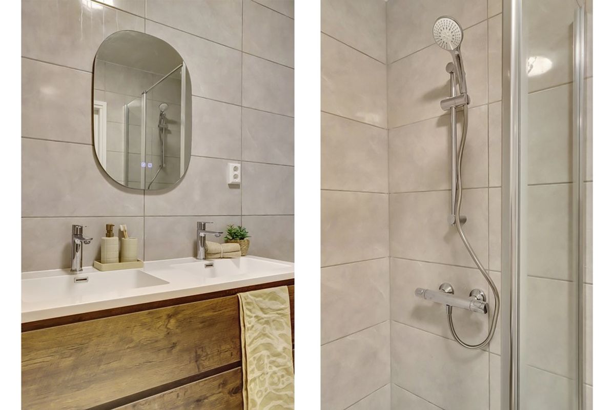 - Doorgang naar tweede badkamer met dubbele wastafel, tweede toilet, douche en wasmachine-aansluiting