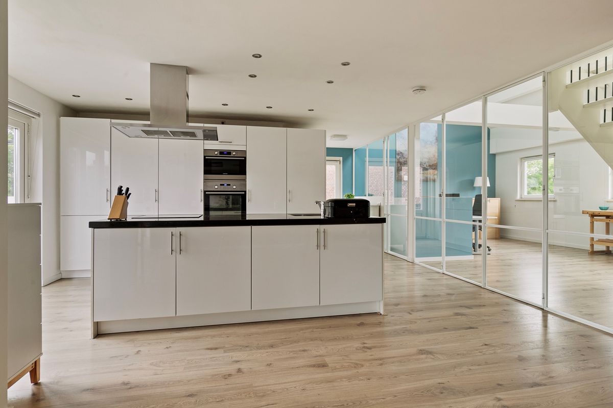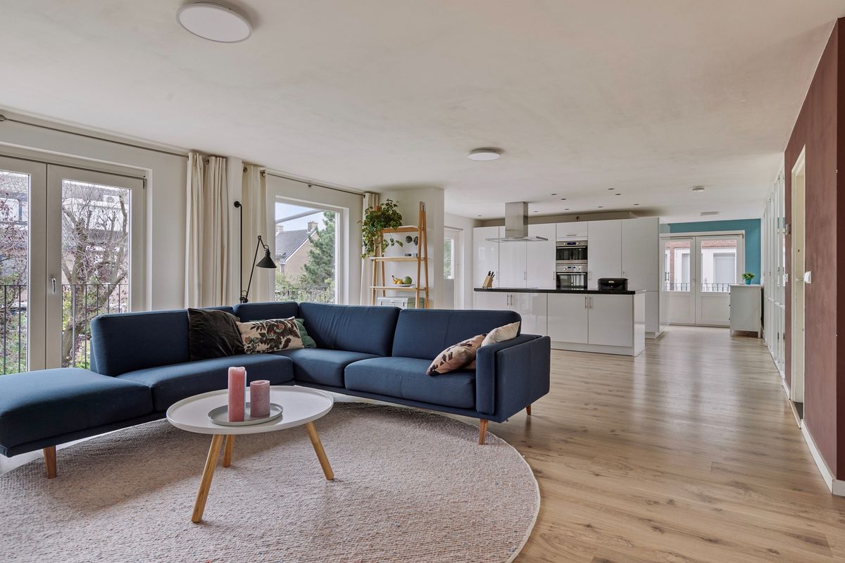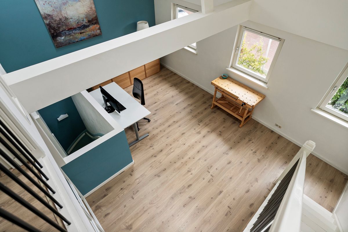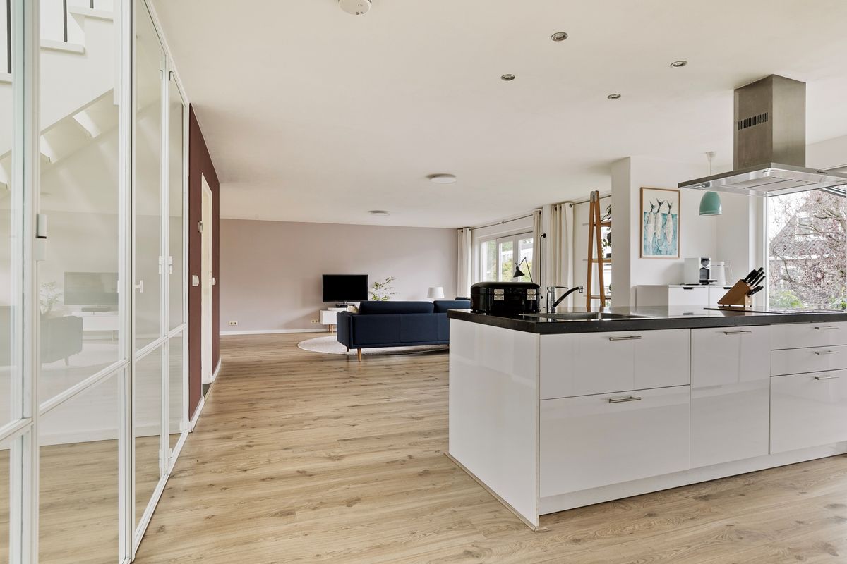 ** Unique and exceptionally spacious, ready-to-move-in duplex apartment with garage and large roof terrace ** A house like this is very rare. You really have to see it for yourself to realize how large, well finished and ready-to-move-in this house really is. In 2009/2010, the upper floors of the former pharmacy and current dentist's practice were converted into a modern, light and special upper house. With no less than 200m² of cleverly architect designed living space, a spacious garage and parking space on the driveway, this house is a unique object on the edge of the original heart of Leiderdorp. The house has no fewer than five bedrooms, a very large living room with open kitchen, extra living space on the its first floor, two bathrooms, a spacious utility room, a roomy garage, a large roof terrace, the possibility of using the garden and has an ‘A’energy label. The building is fully insulated, equipped with UPVC windows with HR++ glass, external vertical sun screens on both floors (2024), a large retractable sunblind for the roof terrace and air conditioning in all bedrooms for heating and cooling. The house is located a stone's throw from Leiden, a stone’s throw from the lovely old part of Leiderdorp. By bike, you can be browsing the Leiden market in ten minutes or cycling between the grazing cows in the polders. All necessary amenities are within easy reach here. The house is also ideally located with easy access to the motorway to Amsterdam, The Hague, Rotterdam, Utrecht or Schiphol with excellent connections to public transport as well. This house also has its own website: Loevestein7a.nl where you can find large-format photos and all kinds of useful tools. The relevant documentation can also be found there. Let’s have a sneak peek around the house.