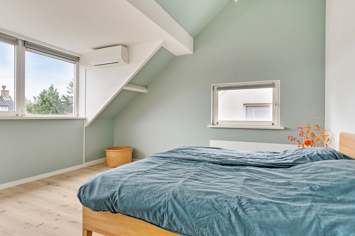 Alle vertrekken op de slaapverdieping zijn maximaal van formaat door de grote dakkappellen die voor en achter geplaatst zijn in 2009 en net als de rest van de woning strak gestukt en netjes afgewerkt. In alle kamers is er een maximaal gevoel van ruimte en rust door de hoogte die is vrijgemaakt tot in de nok. Er zijn maar liefst 5 slaapkamers, waarvan er één in gebruik is als inloopkast. De slaapkamers zijn allen voorzien van airconditioning waarmee per kamer verwarmd of gekoeld kan worden. Alle kamers, inclusief de tweede badkamer zijn voorzien van screens (2023).