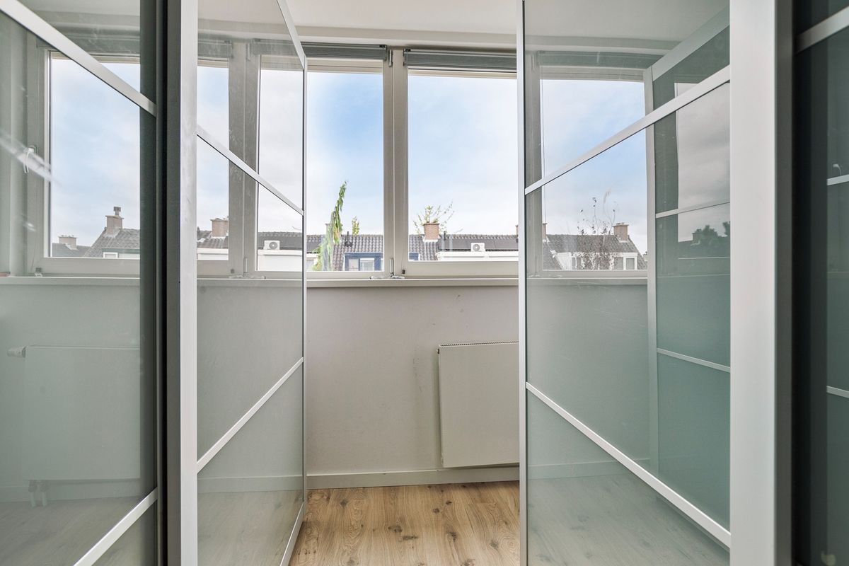 Vanuit de keuken is er toegang tot het ruime dakterras. Gelegen op het NW is deze met maar liefst 22m² ruim bemeten en kan je hier vanaf de middag tot in de avond genieten van de zon. Voor de warmere dagen is het dakterras ook voorzien van een elektrisch textieldak (2024) waardoor het dakterras van de nodige schaduw wordt voorzien. Het terras geeft zicht op het sedumdak, dat in de zomer prachtig bloeit in verschillende kleuren. Vanaf het dakterras is er een vaste trap naar de achtertuin die onder voorwaarden gebruikt kan worden door de bovenwoning. Dit leggen we natuurlijk allemaal uit tijdens de bezichtiging. Let ook op de 3 andere balkons die aanwezig zijn. Ideaal voor de ventilatie en het zemen van de ramen.