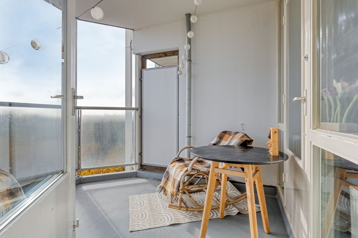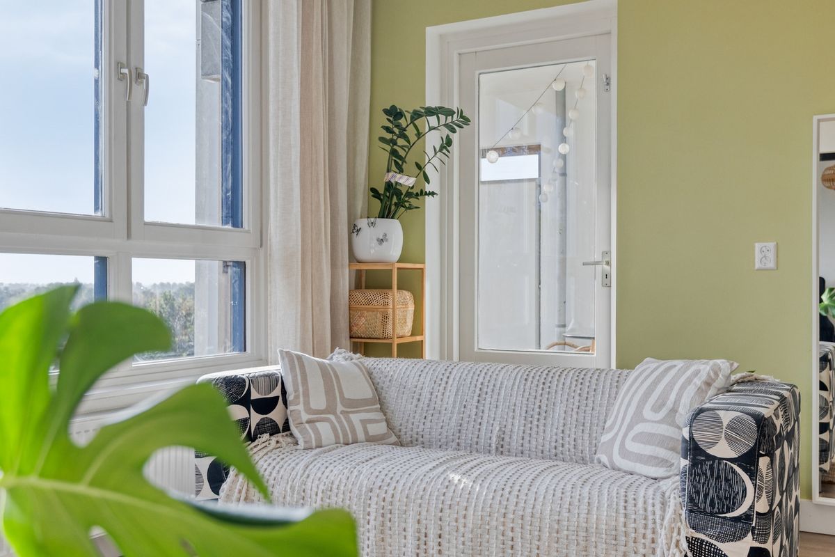 De lichte woonkamer biedt toegang tot het zonnige balkon, perfect voor een kop koffie in de ochtend. Aangrenzend vind je de woon en slaapkamer.