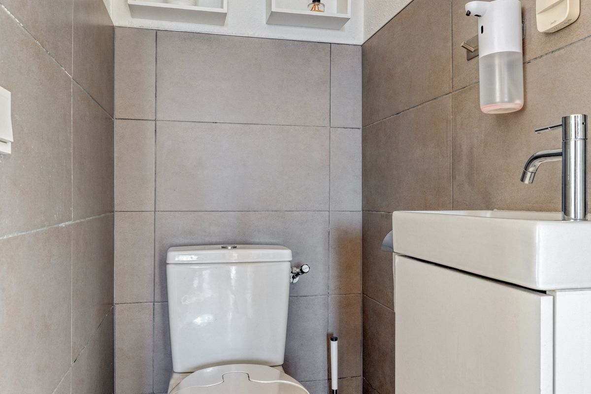 Indeling: Gelegen op de 7e verdieping betreed je het appartement via de entree/hal, voorzien van een video-intercom en toegang tot alle vertrekken. Hier vind je onder andere een praktische wasruimte en een modern, separaat toilet met fonteintje.