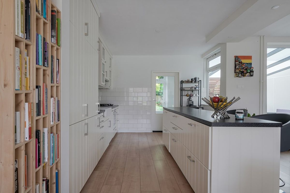 De moderne open woonkeuken (2017) sluit naadloos aan op de living en is van alle gemakken voorzien. De keuken beschikt over een ingebouwde koelkast/vriescombinatie, vaatwasser (2023), oven, gaskookplaat en afzuigkap.