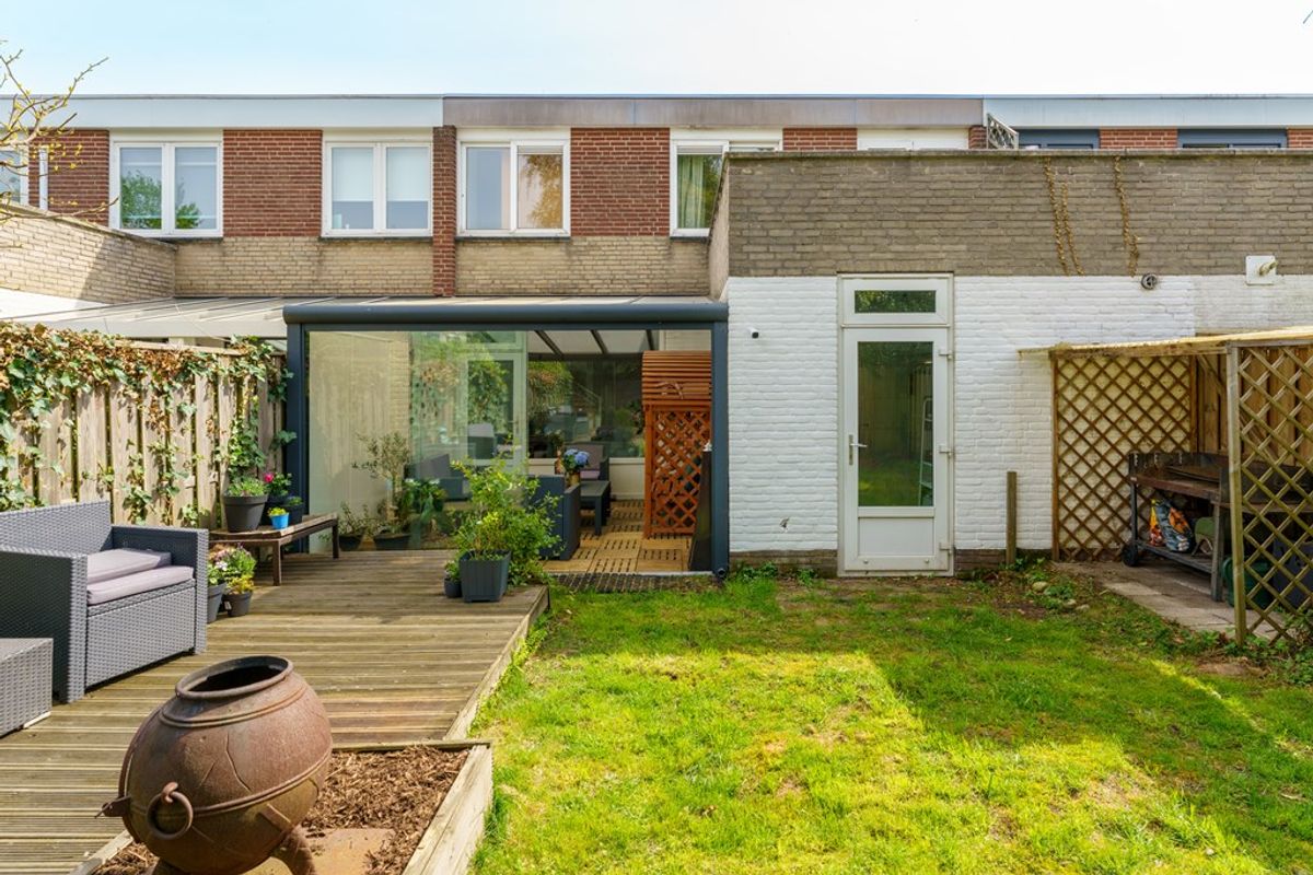 De brede achtertuin op het westen is een heerlijke plek om tot in de avond van de zon te genieten. De tuin is verzorgd aangelegd en beschikt over een ruim terras met overkapping, ideaal voor een lounge‑ of eethoek. Dankzij de beschutte ligging en de groene aankleding ontstaat hier een prettige en ontspannen sfeer.