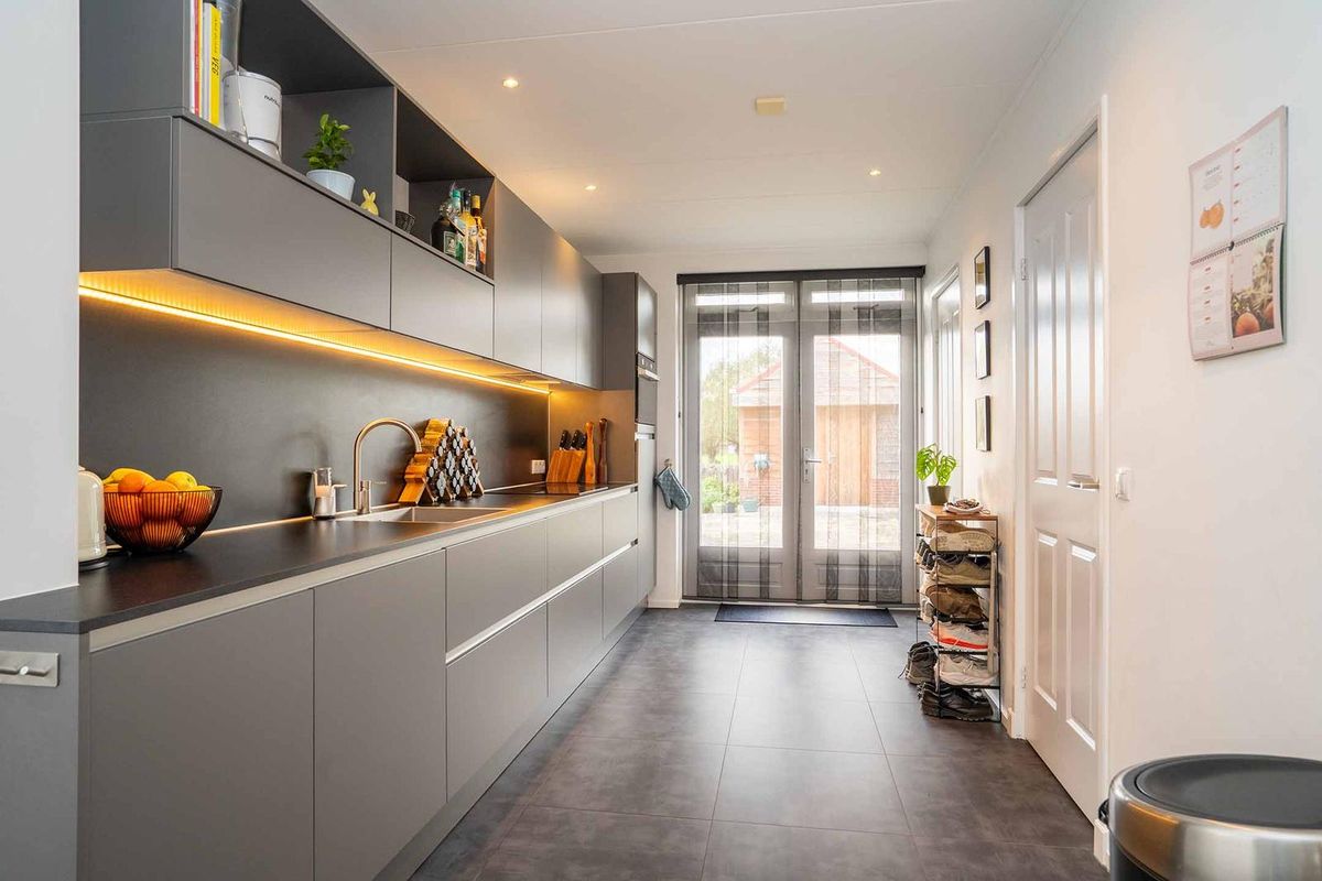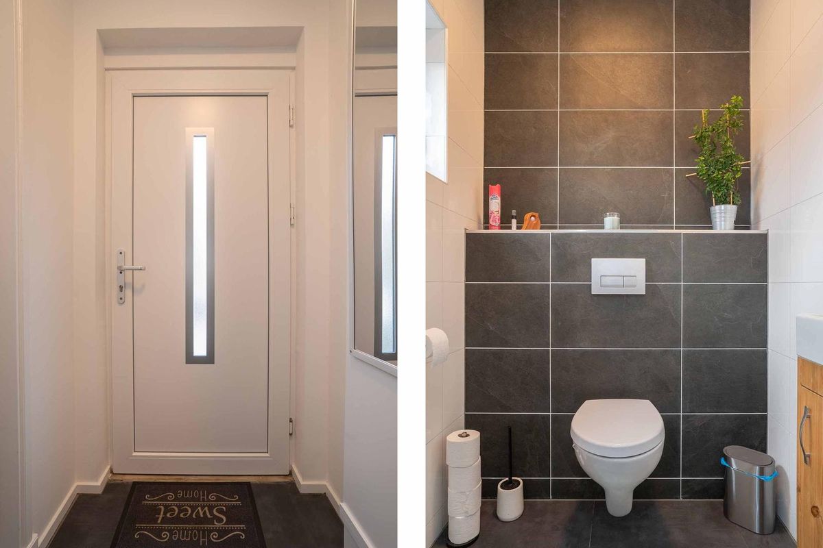 Tevens vind je hier de bijkeuken met opstelplaats voor de wasmachine, de wasdroger en de Cv-installatie.