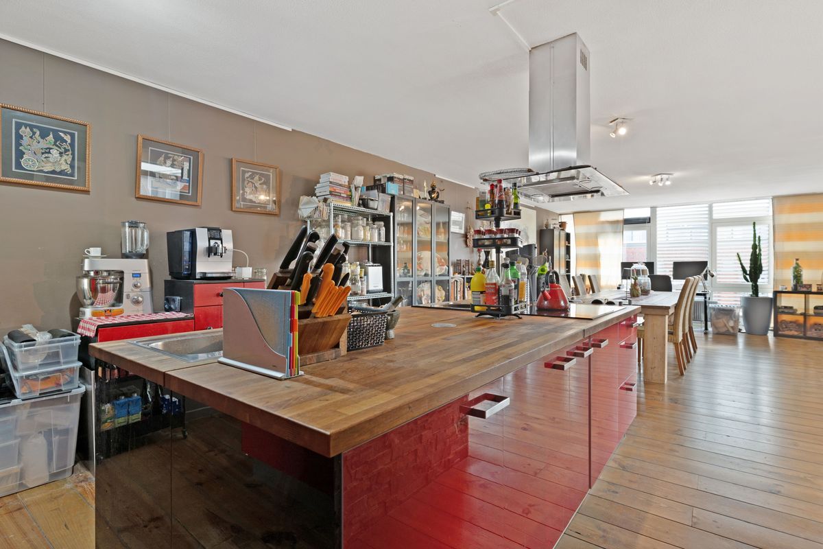 De moderne open keuken is het middelpunt van de woning. Deze is uitgerust met een ruim kookeiland en voorzien van hoogwaardige inbouwapparatuur, zoals een inductiekookplaat, oven en magnetron. Dankzij de slimme indeling heb je hier veel werkruimte en opbergruimte. Er is voldoende plek voor een grote eettafel. Ideaal voor etentjes met vrienden of een rustige start van je dag met uitzicht op de stad.