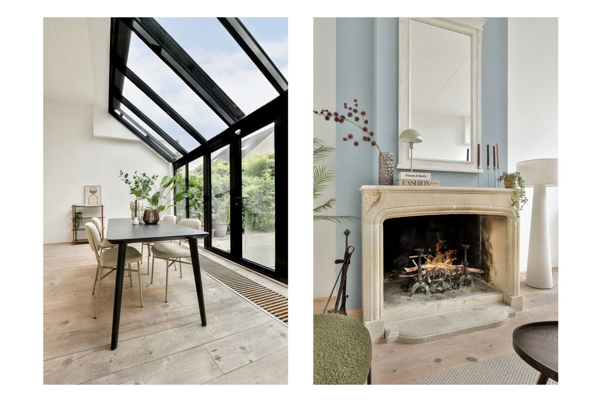• Stijlvolle serre met openslaande deuren, geheel voorzien van HR-isolatieglas, zorgt voor vloeiende overgang tussen binnen en buiten