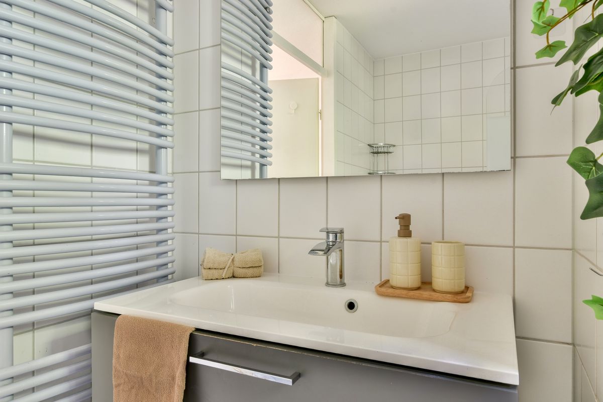 • 1e badkamer voorzien van bad met douche, wastafelmeubel, handdoekdroogrek en tweede toilet