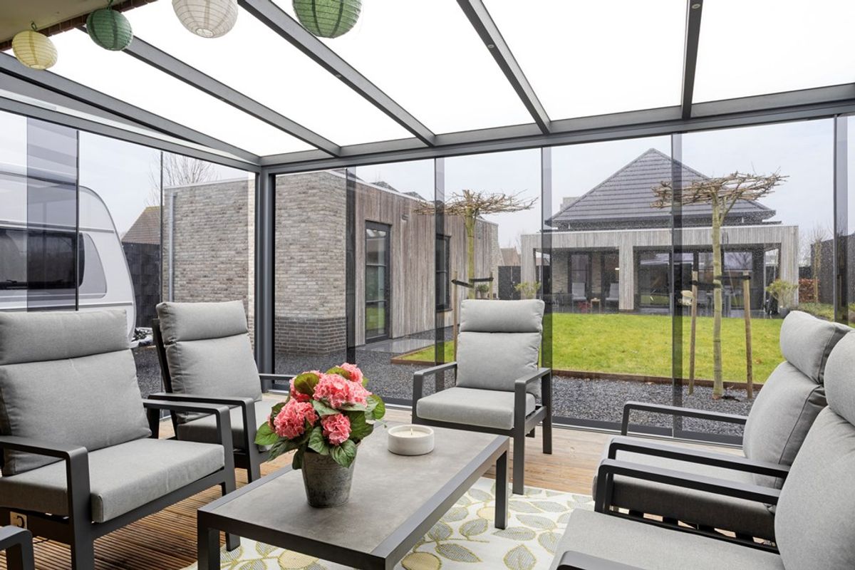 Tuinen, garage, tuinkamer en overkapping: de woning heeft een onderhoudsvriendelijke voor- en achtertuin. Voortuin is ca. 5m diep x 16m breed en de achtertuin ca. 29m diep en 16m breed. De achtertuin ligt op noordwest en kijkt uit op polderlandschap en de voorruin ligt op zuidoost. In de voortuin een riante plantenborder en een brievenbus van cortenstaal net als de randen van de border. De garage (ca. 9,33m x 3,31m) heeft een elektrisch bedienbare sectionaaldeur en een ingang aan de zijkant. Hier zit ook de verdeler van de zonnepanelen en een aparte groepenkast. Tuinkamer (ca. 6,78m x 5,88m): deze bijzonder mooie tuinkamer heeft een glazenschuifwand. Zo kan je zowel in de zomer als in de winter hier genieten. De riante overkapping (ca. 9,98m x 3,58m) aan de achterzijde is een fijne schaduwplaats in de hoogzomerperiode.
