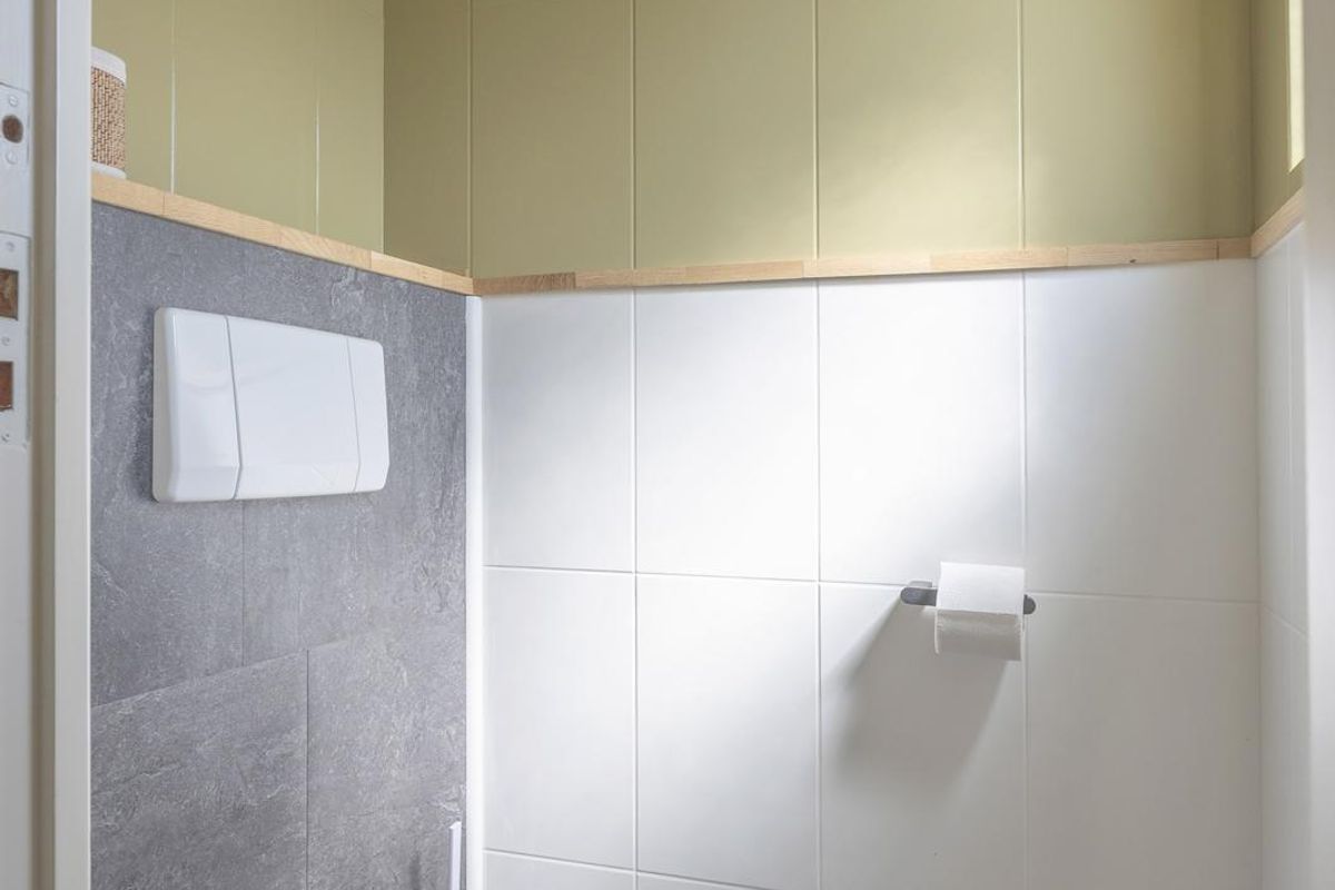 Entree met hal, meterkast (6 groepen) en een geheel betegelde toiletruimte met zwevend closet.