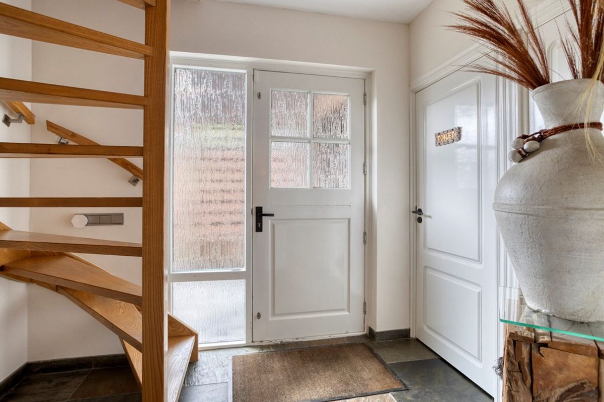 Via de overdekte entree komt u in de hal met meterkast en toiletruimte. De royale woonkamer en eetkamer zijn stijlvol afgewerkt en lopen vloeiend over in de luxe keuken.
