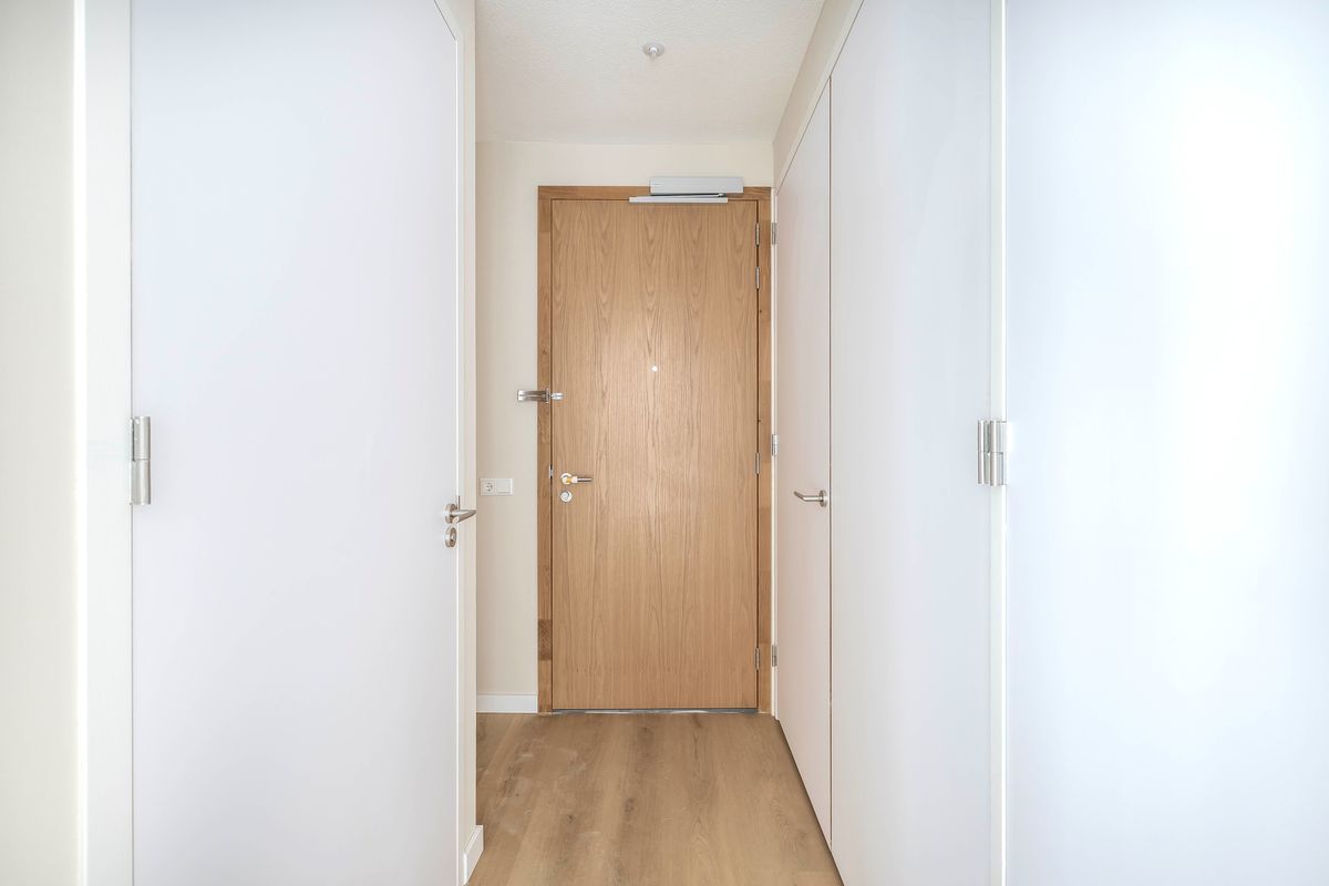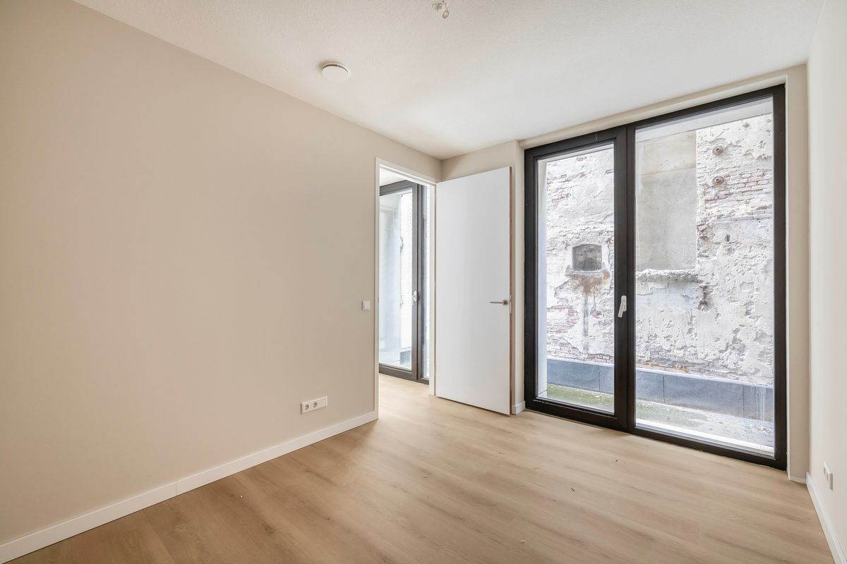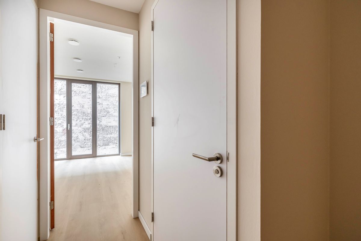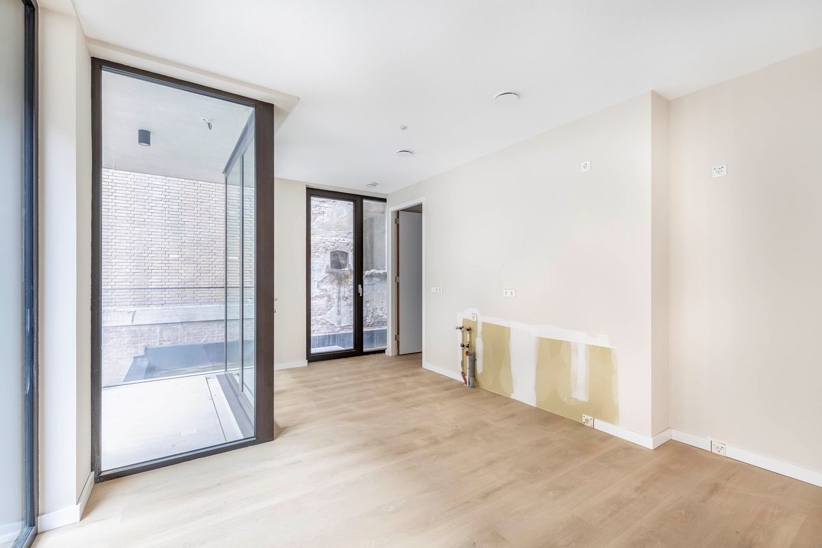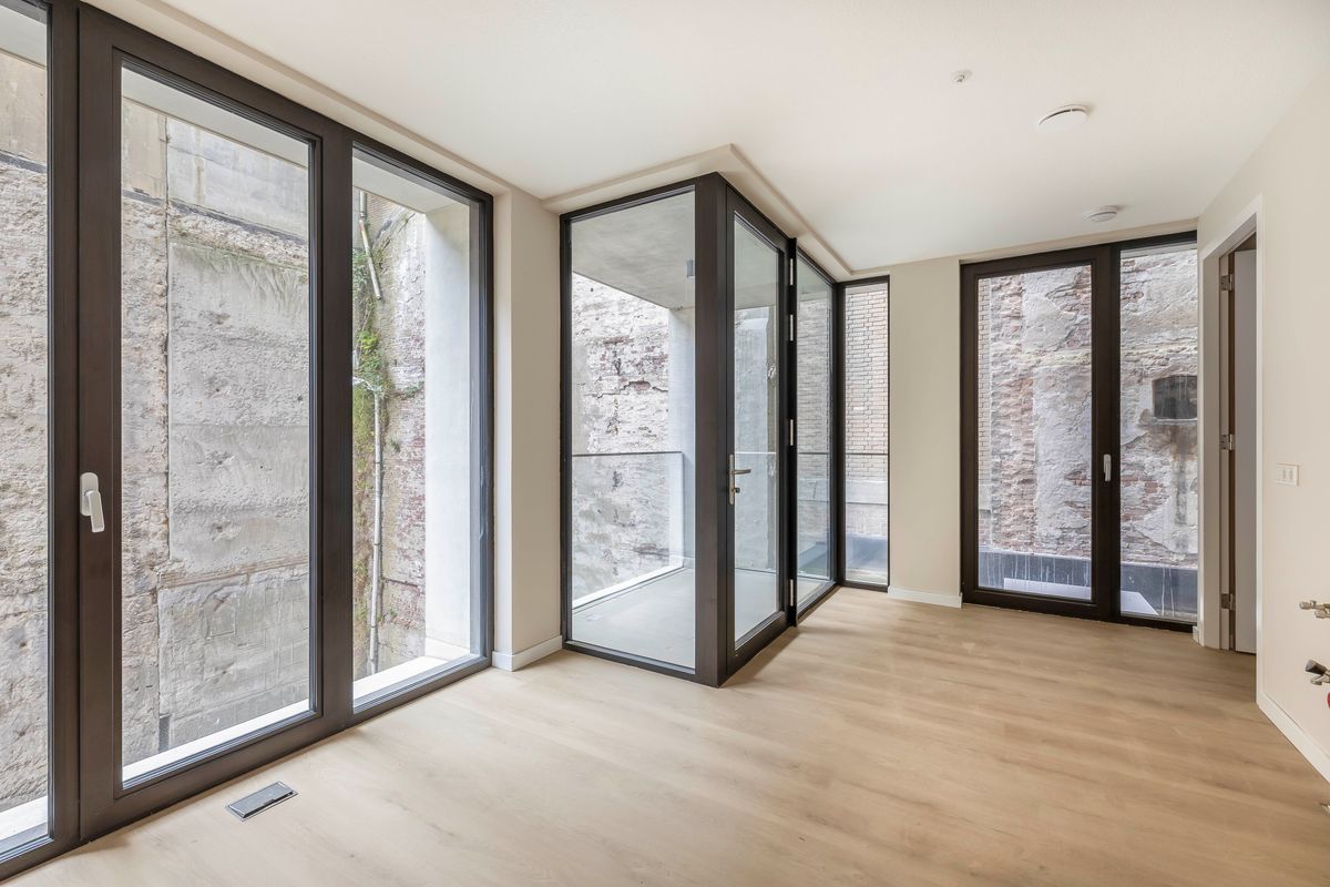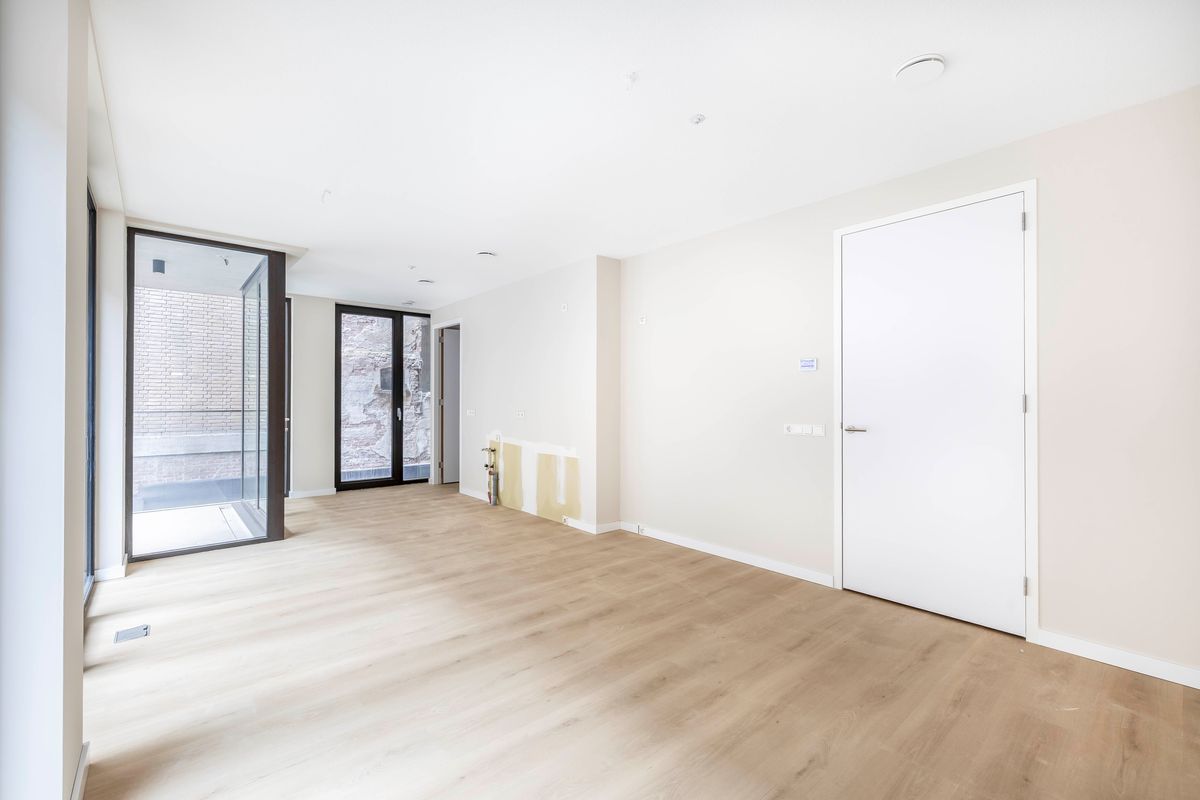 Bij binnenkomst in het appartement betreed je de hal met een separaat toilet. De lichte woonkamer met hoge ramen biedt volop mogelijkheden om een comfortabele leefruimte te creëren. De open keuken is nog vrij in te richten, wat je de kans geeft om het appartement volledig naar eigen smaak af te werken. De aangrenzende slaapkamer beschikt over een badkamer ensuite – praktisch en stijlvol te combineren.