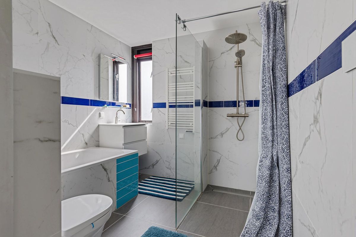 De overloop biedt toegang tot drie slaapkamers, waarvan een aan de voorzijde en twee aan de achterzijde. De badkamer is compleet uitgerust met een ligbad, aparte douche, toilet, wastafel en designradiator.