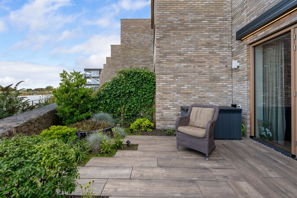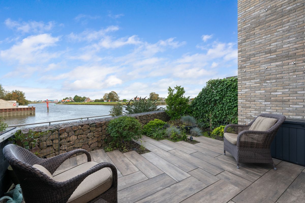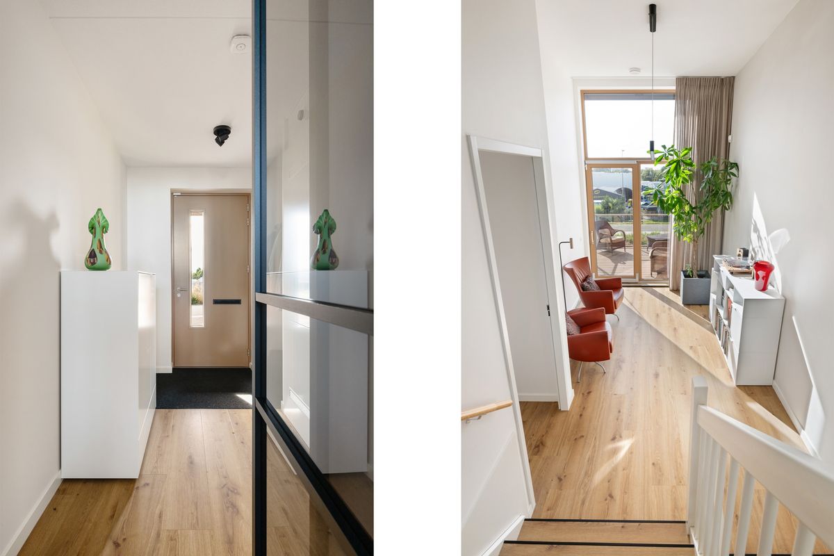 Op de bovenste verdieping bevindt zich een overloop met een vaste kast voor de wasmachineaansluiting. De nette badkamer is voorzien van een inloopdouche, een wastafelmeubel met dubbele kraan en een toilet. Aan de achterzijde bevinden zich nog twee ruime slaapkamers met een prachtig uitzicht op het water.