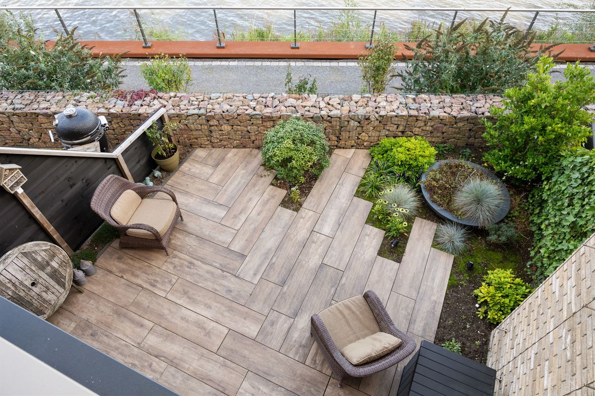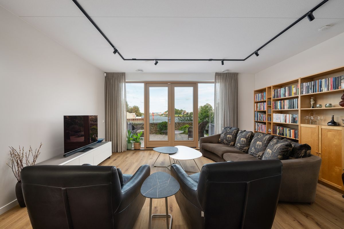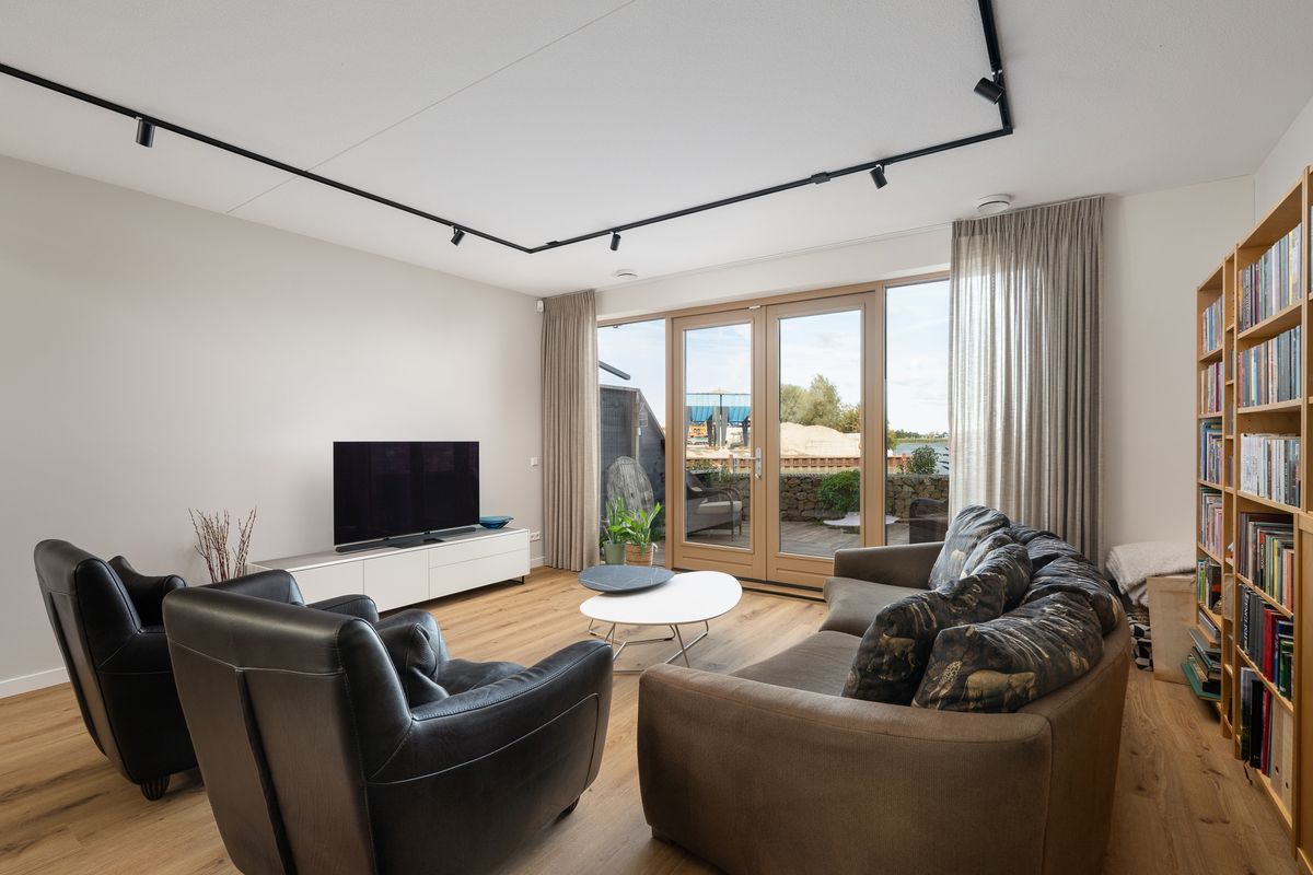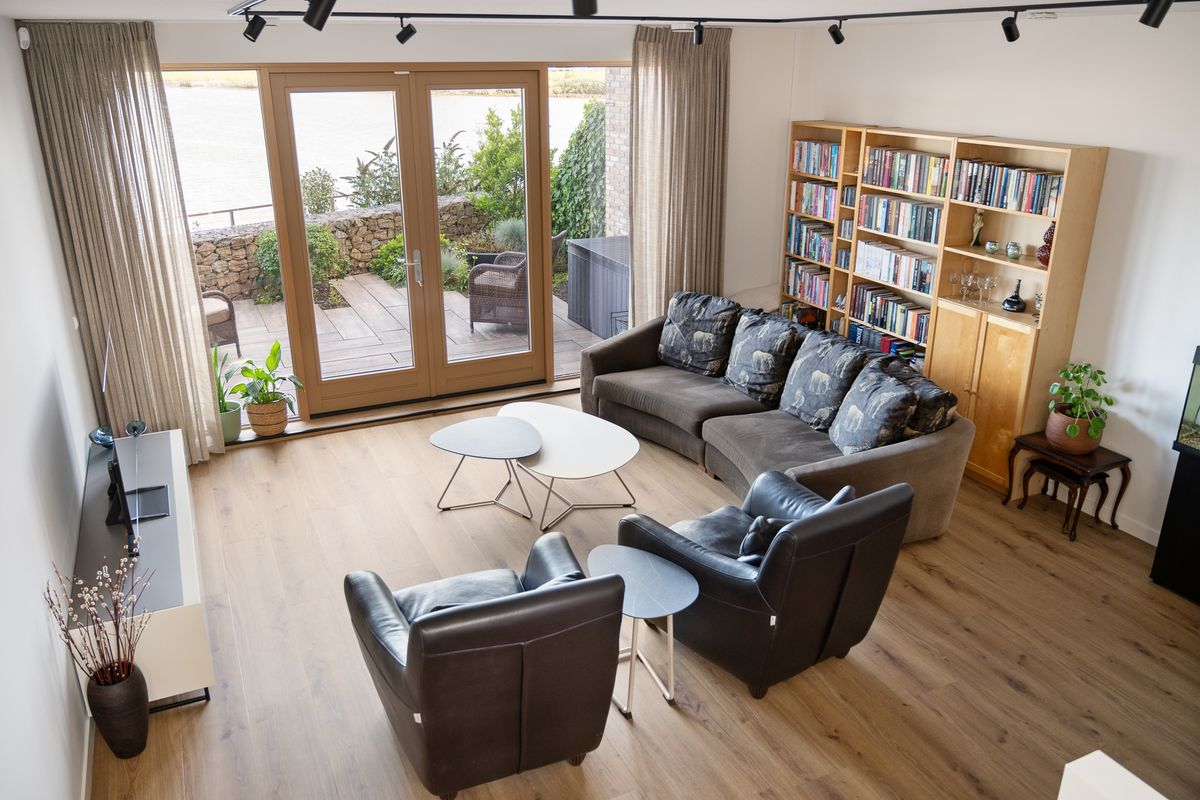 Via een halve trap bereikt u de sfeervolle woonkamer. Het eerste wat opvalt is het vrije uitzicht op de IJssel. Hier ziet u dagelijks boten voorbij varen! De lichte woonkamer biedt voldoende ruimte voor een gezellige zithoek en een sfeervolle eethoek. Via de dubbele deuren heeft u toegang tot de fraai aangelegde achtertuin, waar u volop kunt genieten van het fantastische uitzicht. De tuin is keurig aangelegd en voorzien van verlichting, elektrisch zonnescherm met verlichting en een buitenkraan.