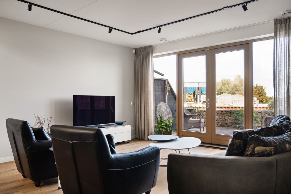 Door de hele woning ligt een kwalitatief hoogwaardige PVC-vloer ten behoeve van de daaronder geplaatste vloerverwarming met topkoeling. De wanden zijn strak afgewerkt met renovlies behang voor een moderne uitstraling.
