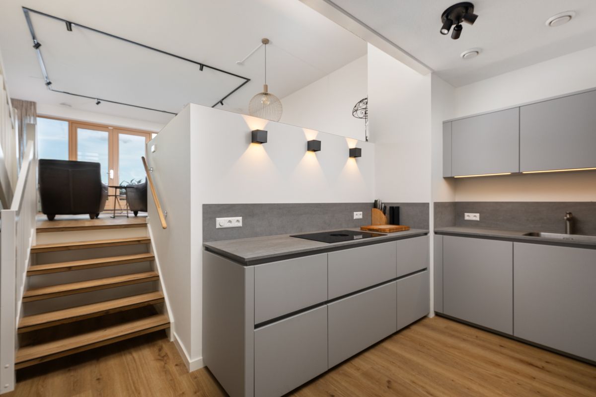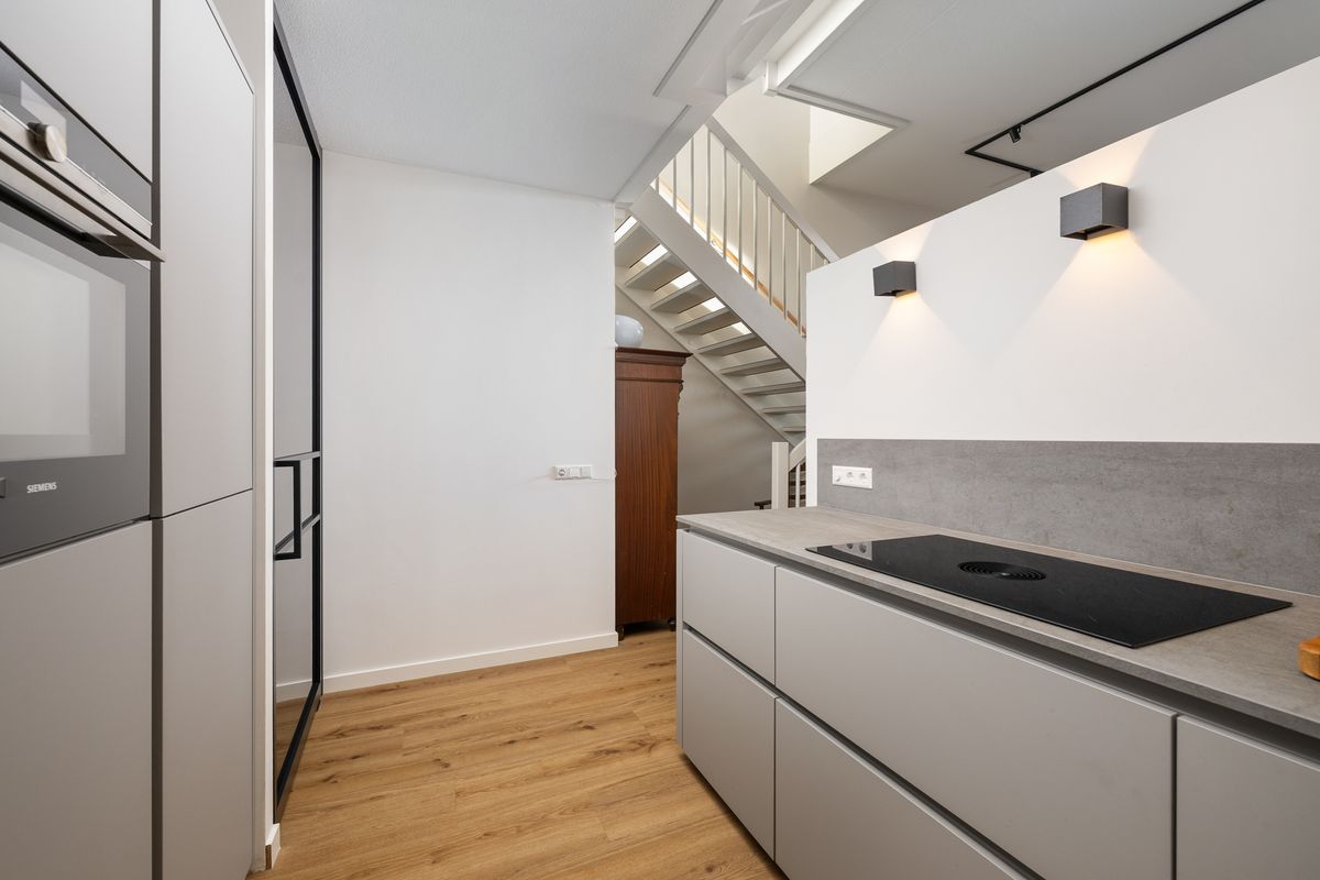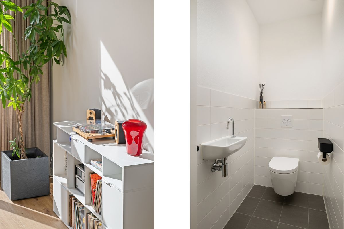 Bij binnenkomst treft u een ruime hal met een moderne toiletruimte en meterkast. Via de taatsdeur (GewoonGers) bereikt u de luxe keuken voorzien van een keramiek werkblad en hoogwaardige inbouwapparatuur van Siemens, waaronder een combi-magnetron, XXL-vaatwasser, koelkast, vriezer en 4-pits inductiekookplaat met geïntegreerd afzuigsysteem (Bora Pure).