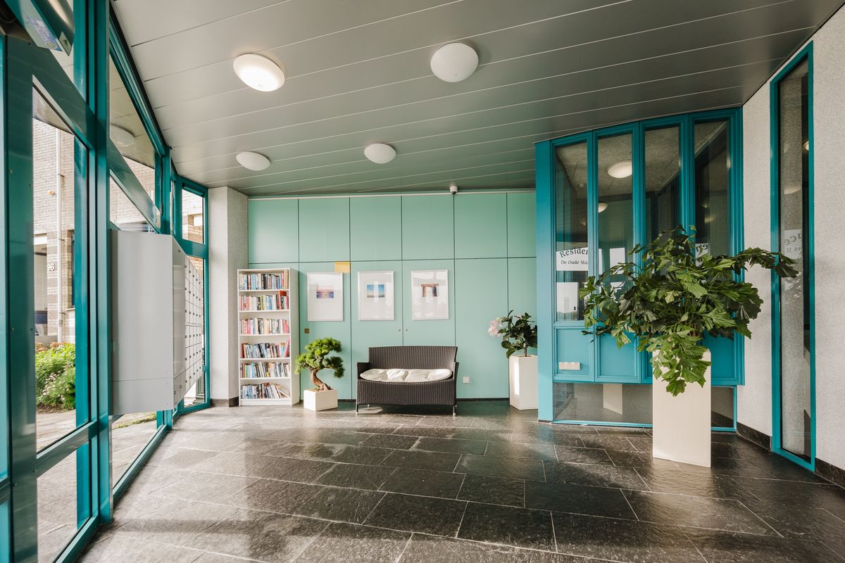 Aan de voorzijde van het complex bereik je de verzorgde entree met bellentableau, de brievenbussen, trapopgang en de lift naar de verdiepingen.