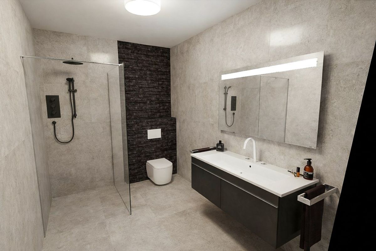 De luxe badkamer (7 m²) wordt standaard uitgevoerd met inloopdouche, toilet en wastafel. Daarnaast beschikt het appartement over een tweede separate toiletruimte, wat extra comfort biedt voor bewoners en gasten.