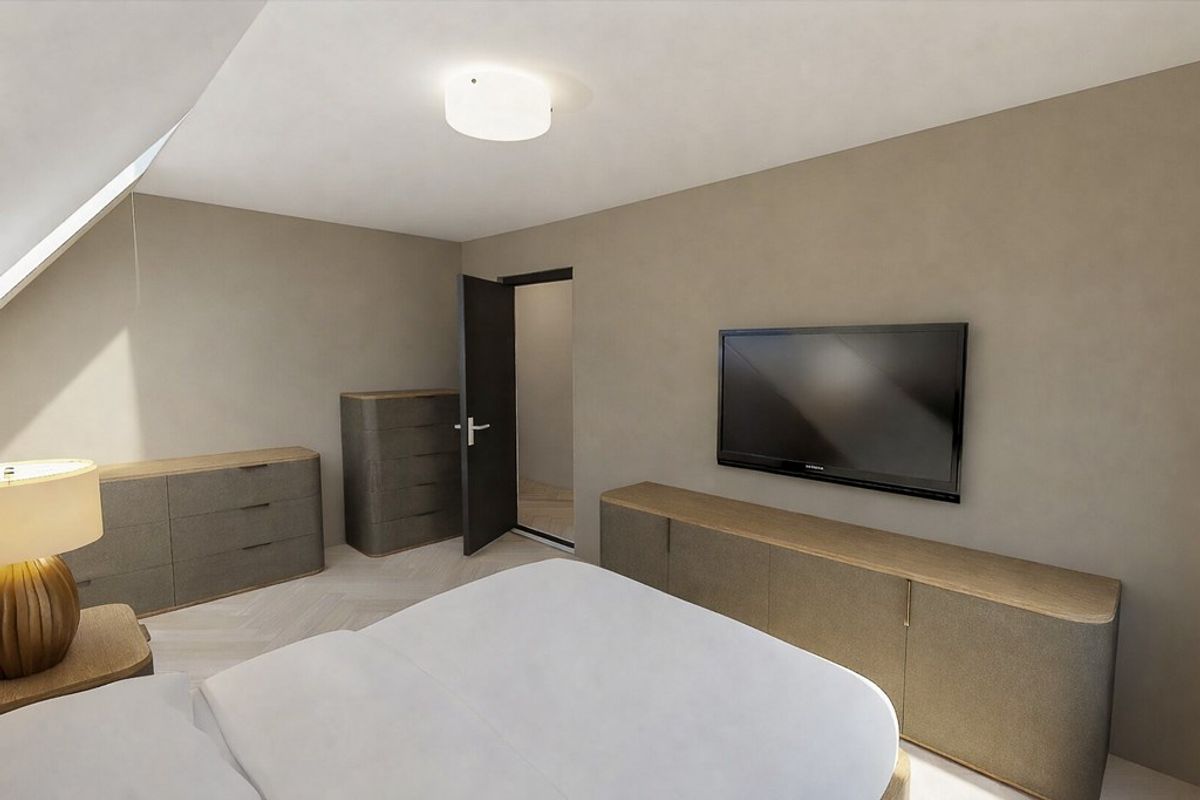 Het penthouse beschikt over drie volwaardige slaapkamers (11 m², 16 m², 23 m²), waaronder een royale master bedroom met aansluitende inloopkast (4 m²).