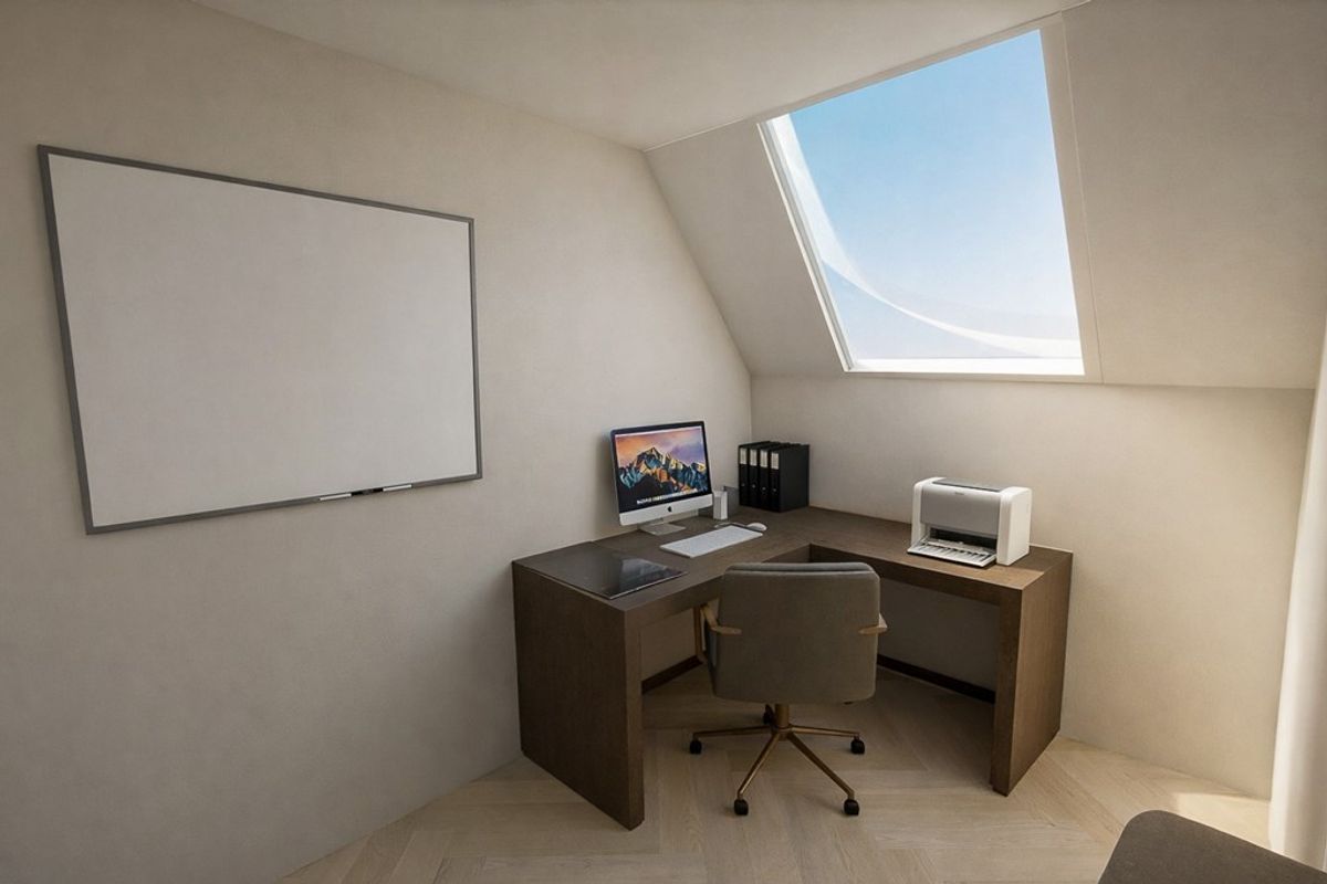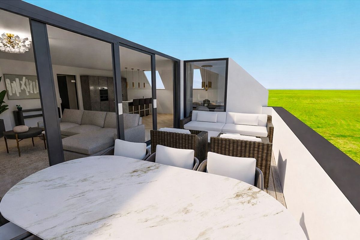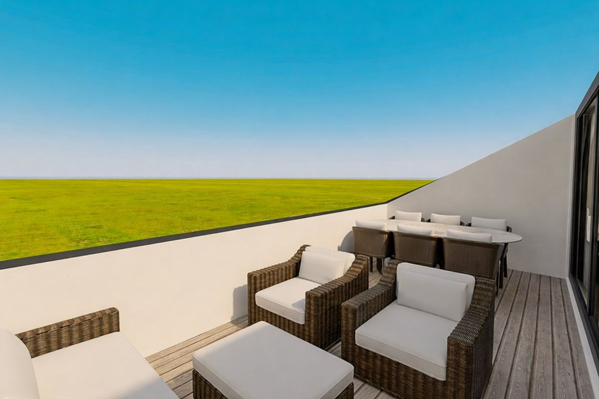 Vanuit de woonkamer heeft u directe toegang tot het royale dakterras van circa 20 m², waar u in alle rust en privacy kunt genieten van het buitenleven.