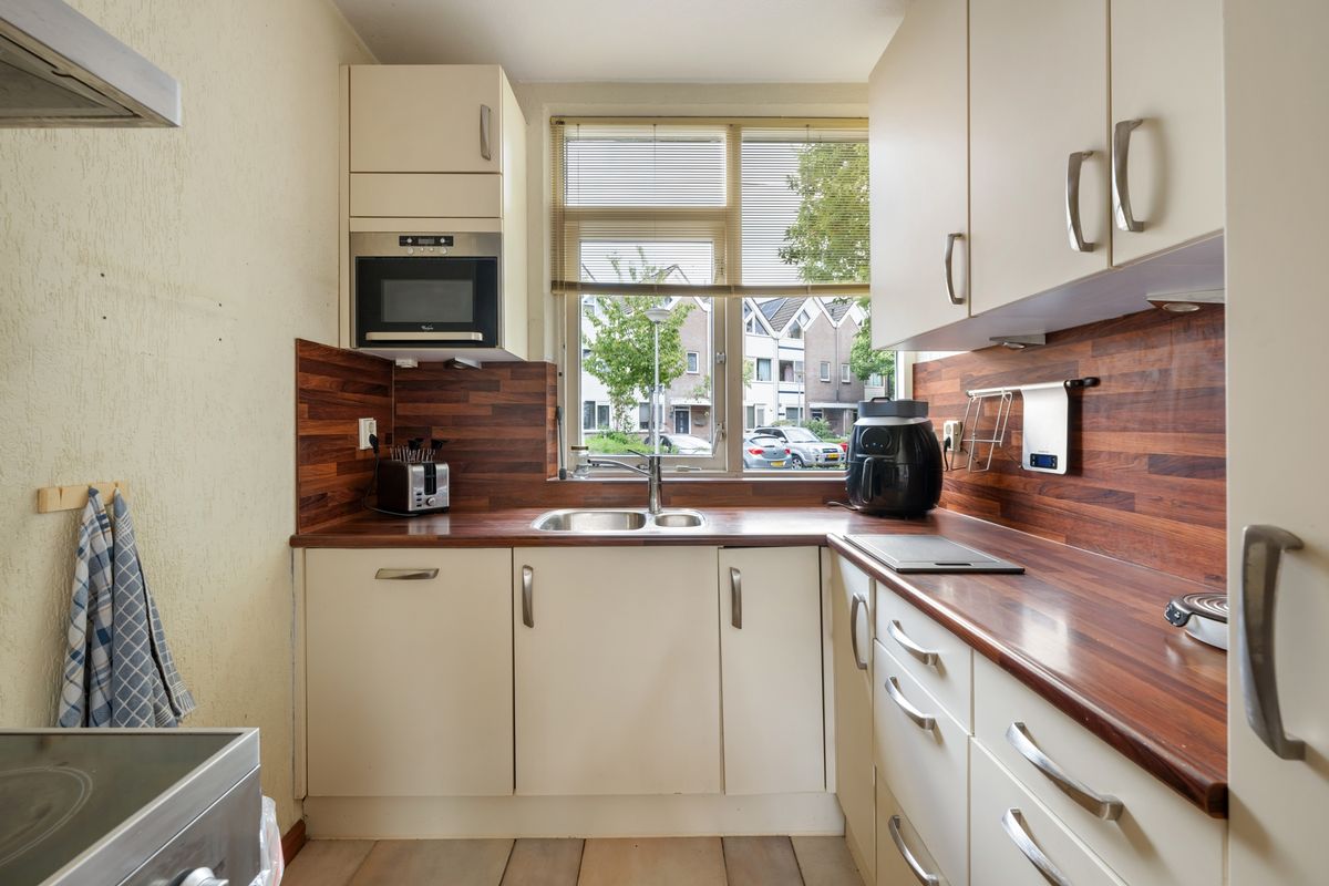 Open keuken (ca. 2.35 x 2.12m) aan de voorzijde van het huis. Vanuit keuken leuk doorkijkje over het hofje