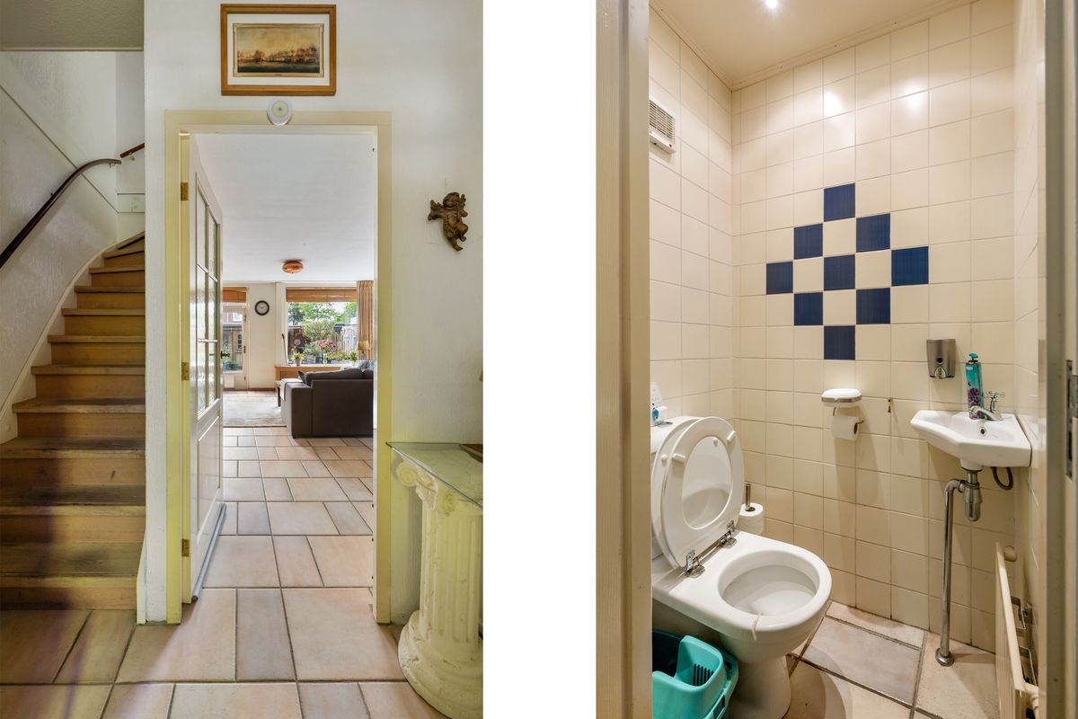 Entree, hal met meterkast, toilet en trap naar de verdieping.