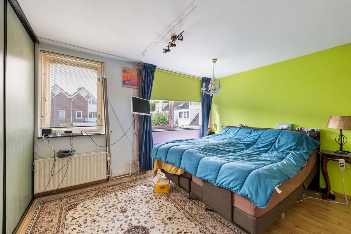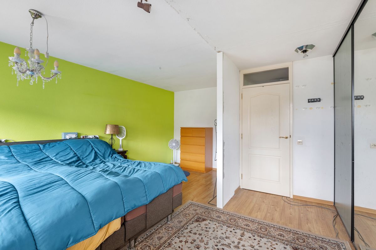 Deze royale kamer bestond oorspronkelijk uit 2 slaapkamers. Indien gewenst zou dit op een eenvoudige manier weer terug te brengen zijn. De kamer is voorzien van een schuifwandkast.