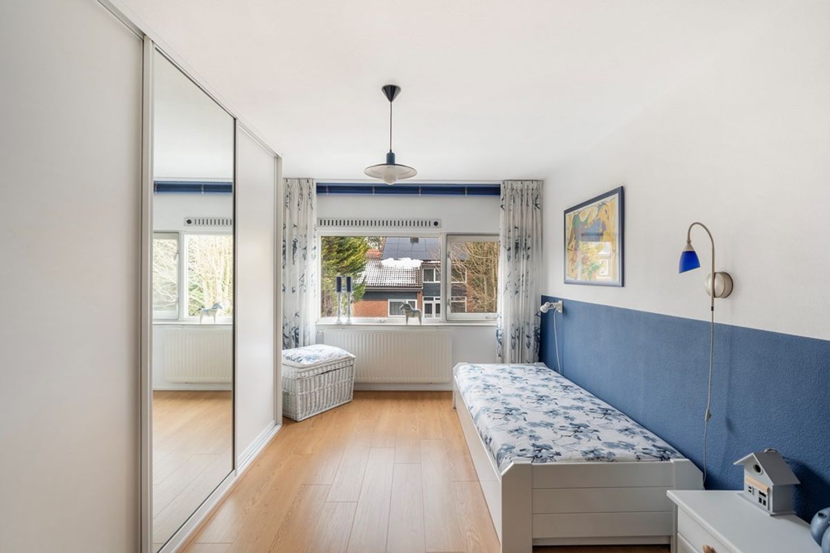 Op de eerste verdieping wachten vier ruime slaapkamers op u. Bijzonder is de slaapkamer boven de garage, die door de extra ruimte perfect is als werk- of speelkamer. De badkamer is compleet uitgerust met een groot ligbad, aparte douche, wastafelmeubel en een tweede toilet. De frisse wit-zwart styling zorgt voor een tijdloze uitstraling.