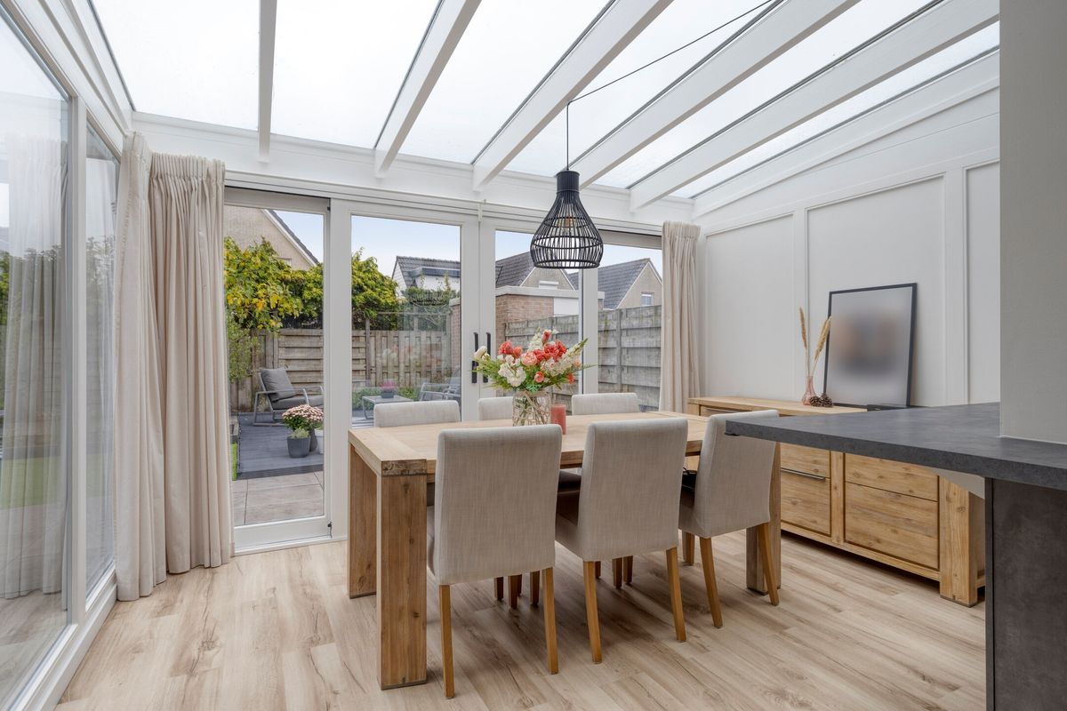 U komt de woning binnen in de hal met meterkast en toilet. Het toilet is keurig en modern uitgevoerd met een hangtoilet en een fonteintje. De lichte, gezellige woonkamer biedt een prettige leefruimte en een fijne zithoek aan de voorzijde. De serre aan de achterzijde is voorzien van de eethoek en staat met de schuifpui in directe verbinding met de tuin, ideaal om tijdens warme dagen van het buitenleven te genieten. De moderne keuken is uitgevoerd in een eigentijdse opstelling met eetbar en voorzien van alle wenselijke inbouwapparatuur: een koel-/vriescombinatie, vaatwasser, oven, inductiekookplaat en Quooker. De keuken staat in open verbinding met de serre, wat zorgt voor een ruimtelijk gevoel.