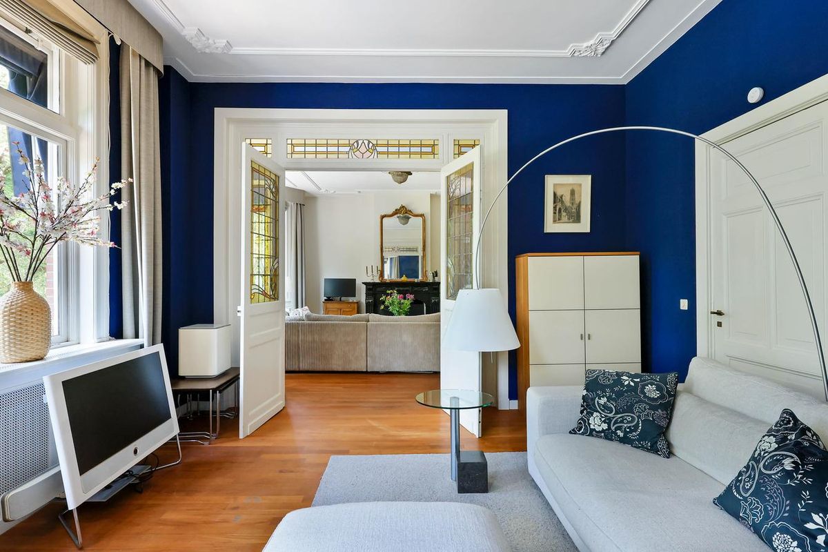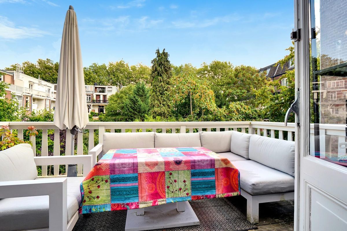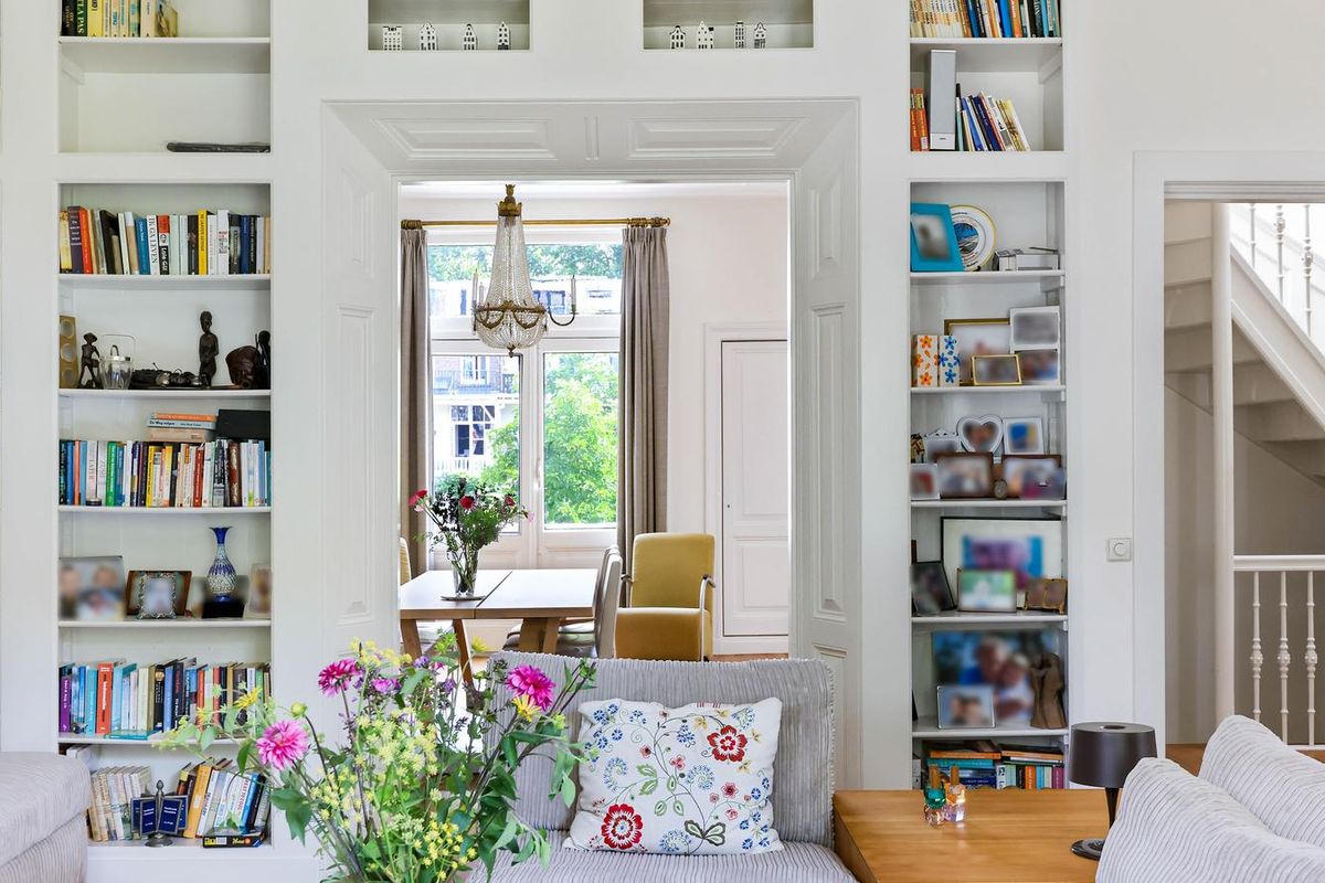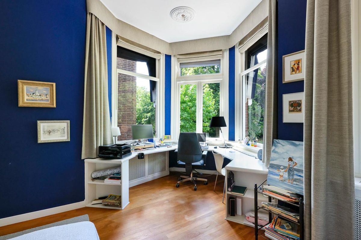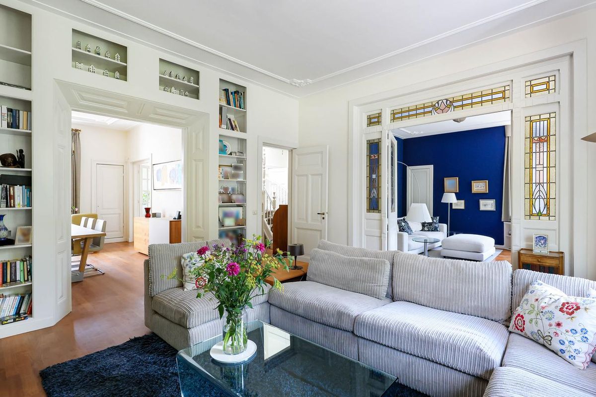 De living en-suite bevindt zich op de eerste etage. Een prachtig lichte leefruimte met een authentieke schouw, fraaie houten vloer en toegang tot maar liefst twee terrassen. U heeft vanaf deze royale terrassen prachtig uitzicht in het groen. Ook aan de voorzijde van het object heeft u een schitterend uitzicht richting de singel. Uniek voor stadse begrippen!