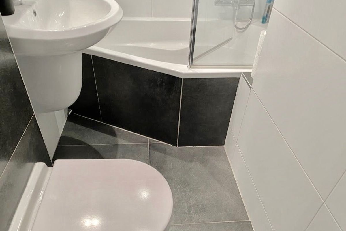 Shared entrance on ground floor. Stairs to first floor. Spacious and bright living and dining room with a beautiful laminate wooden flooring. Kitchen is fitted with oven, dishwasher, fridge/ freezer, extractor and washing machine.