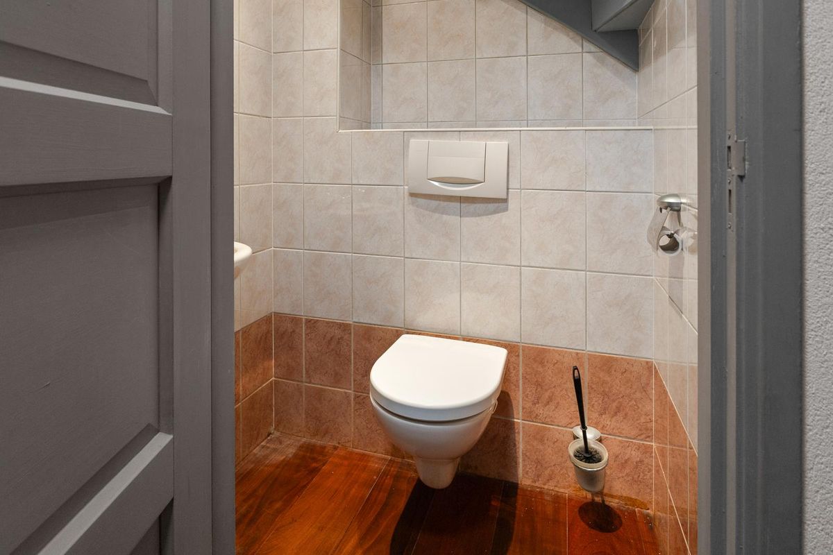 Entree woning, hal met groepenkast, vrijdragend toilet met fontein, trapopgang en toegang tot de woonkamer.
