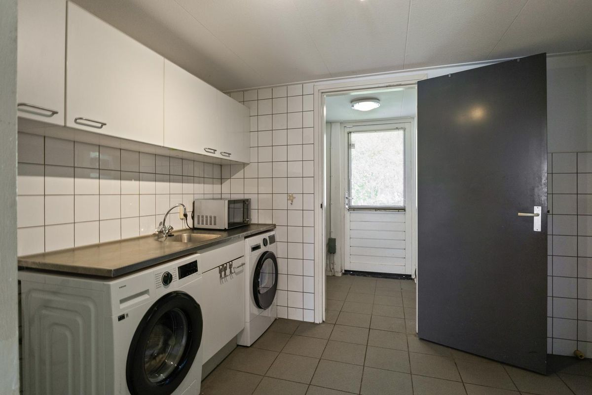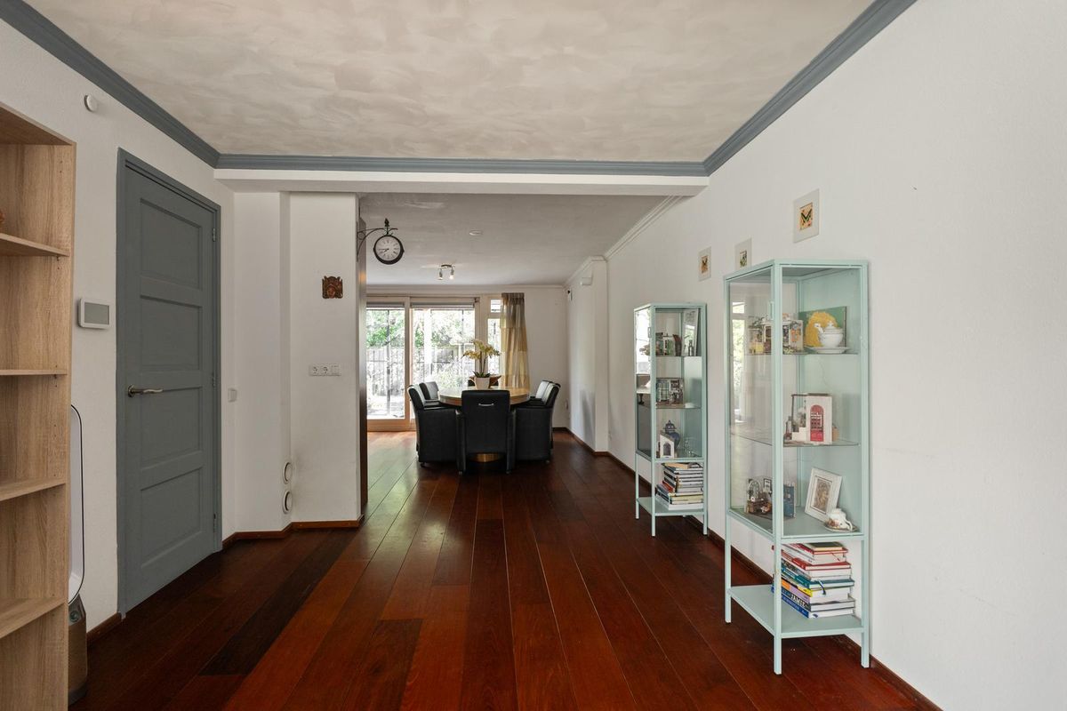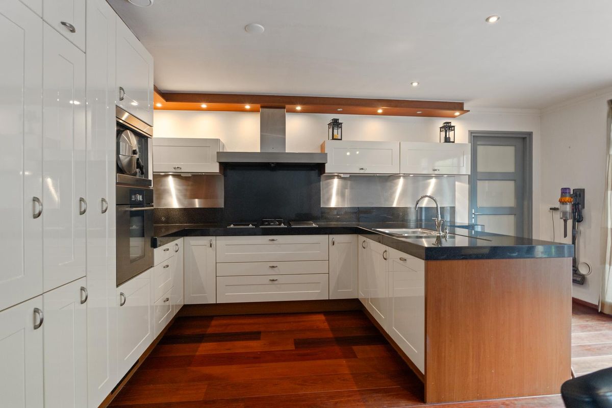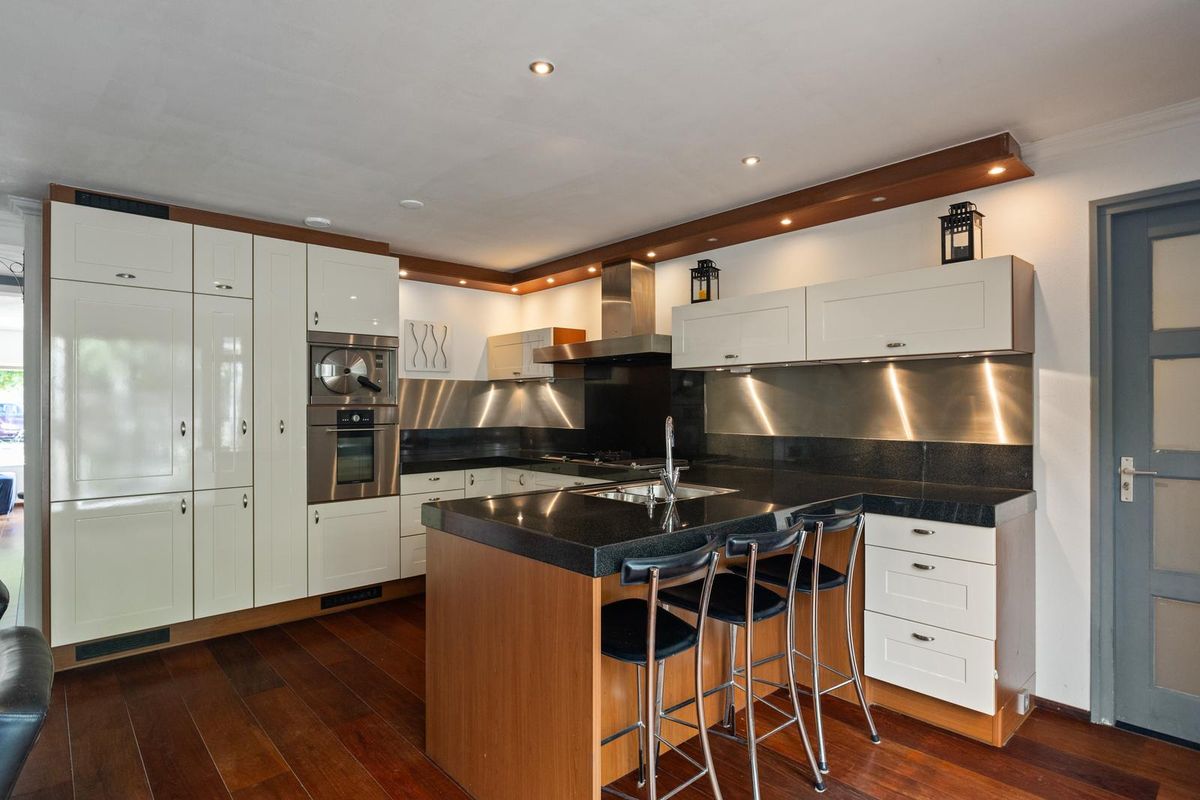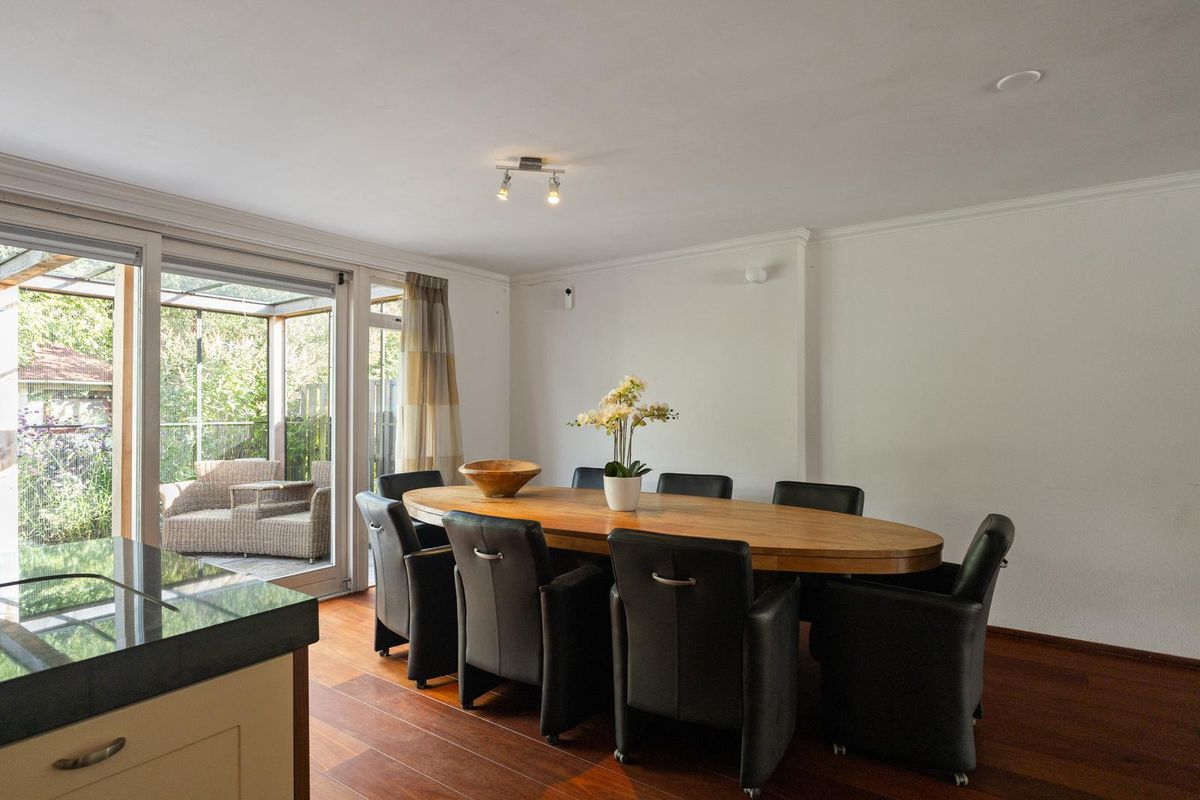 De woonkamer bevindt zich aan de voorzijde van de woning. In 2005 is een aanbouw gerealiseerd, waardoor een heerlijk ruime woonkeuken is gerealiseerd. De keukenopstelling dateert ook van 2005 en in 2024 zijn alle kastjes opnieuw gesteld. Alle wenselijke apparatuur is aanwezig en de koel-vriescombinatie en vaatwasser zijn recent vernieuwd. Vanuit de woonkeuken heb je via de schuifpui toegang tot de mooie achtertuin. Ook kun je vanuit de keuken naar 1 van de 2 bijkeukens en binnendoor naar de (verkleinde) garage/berging.
